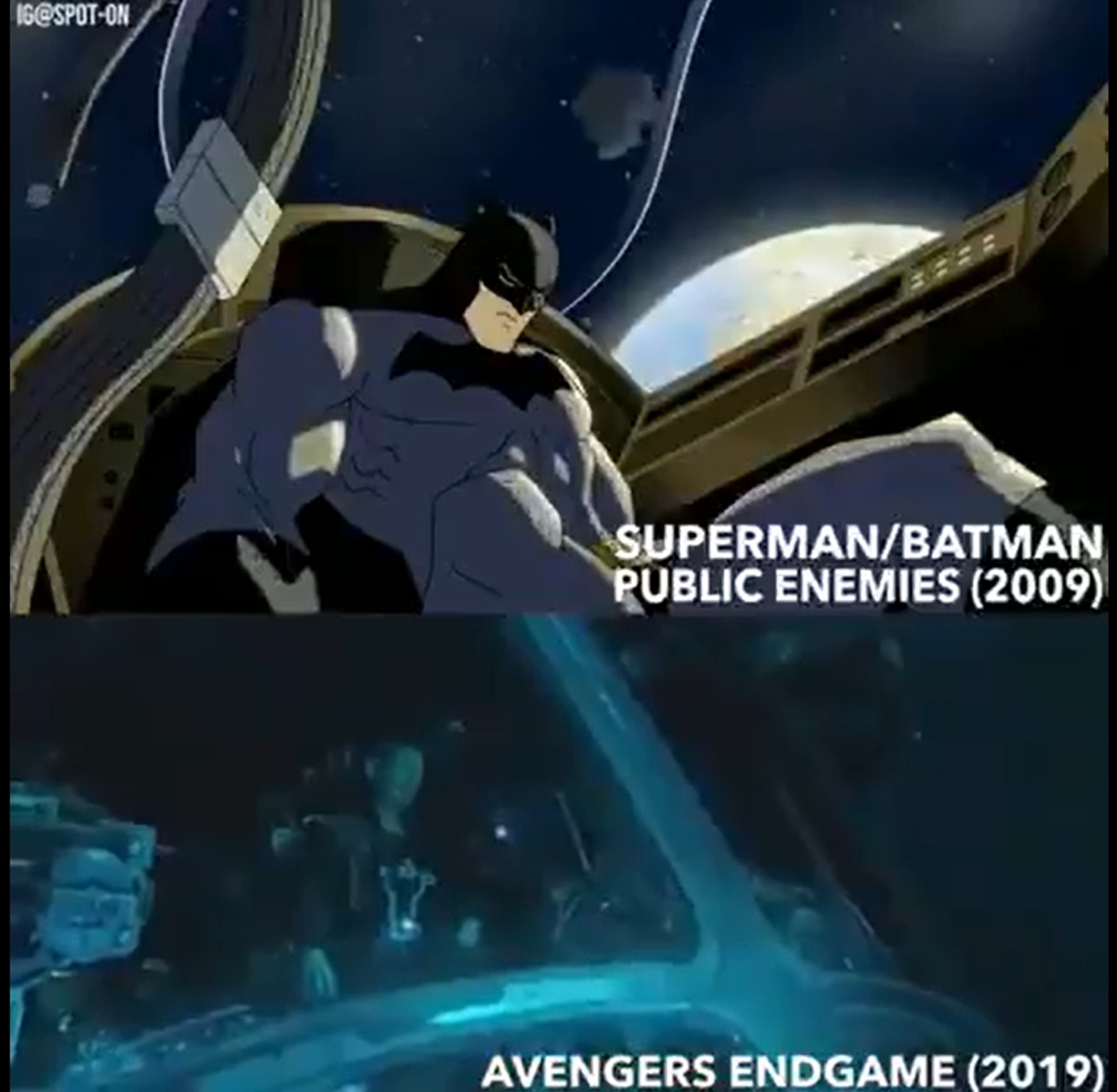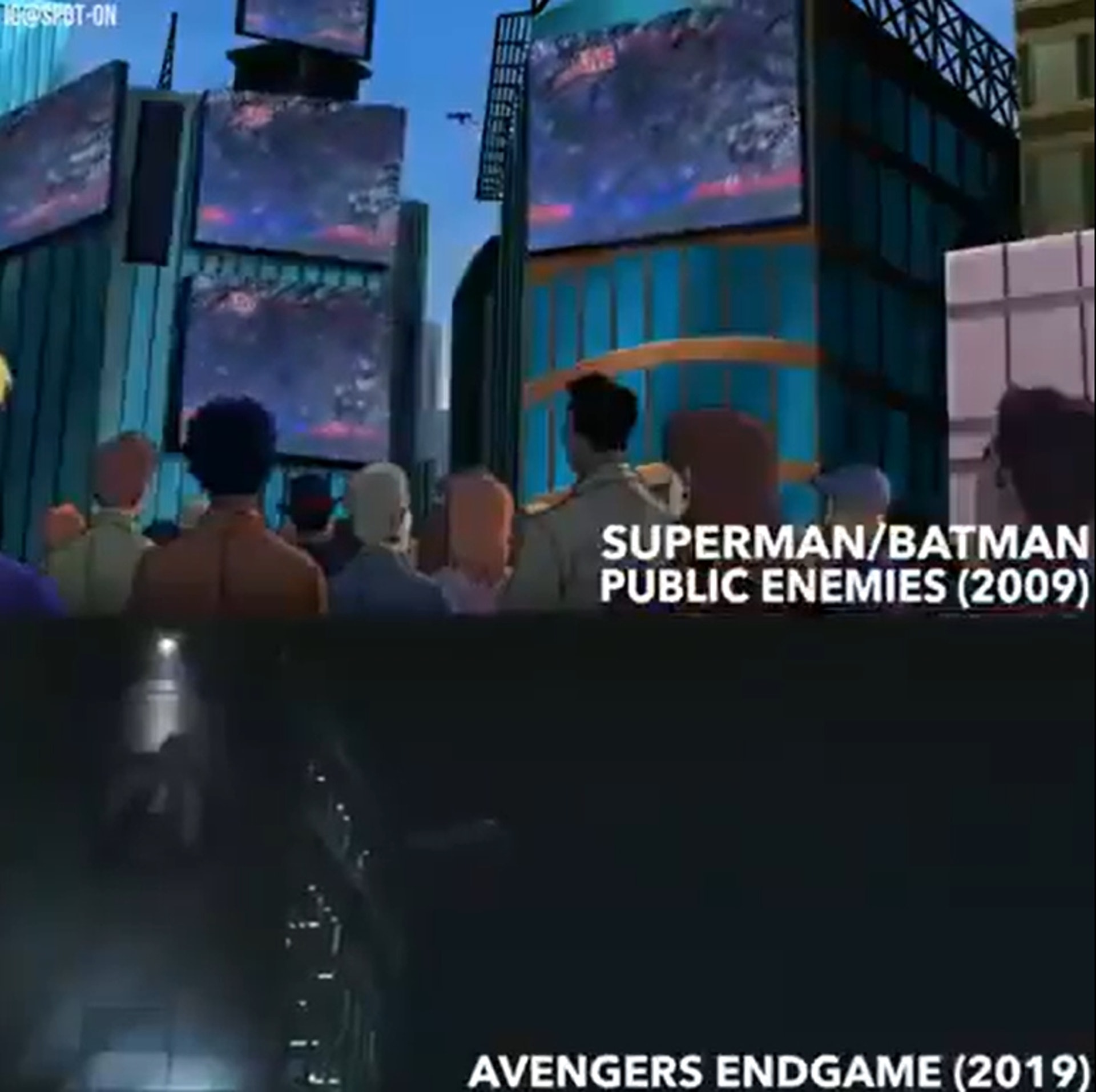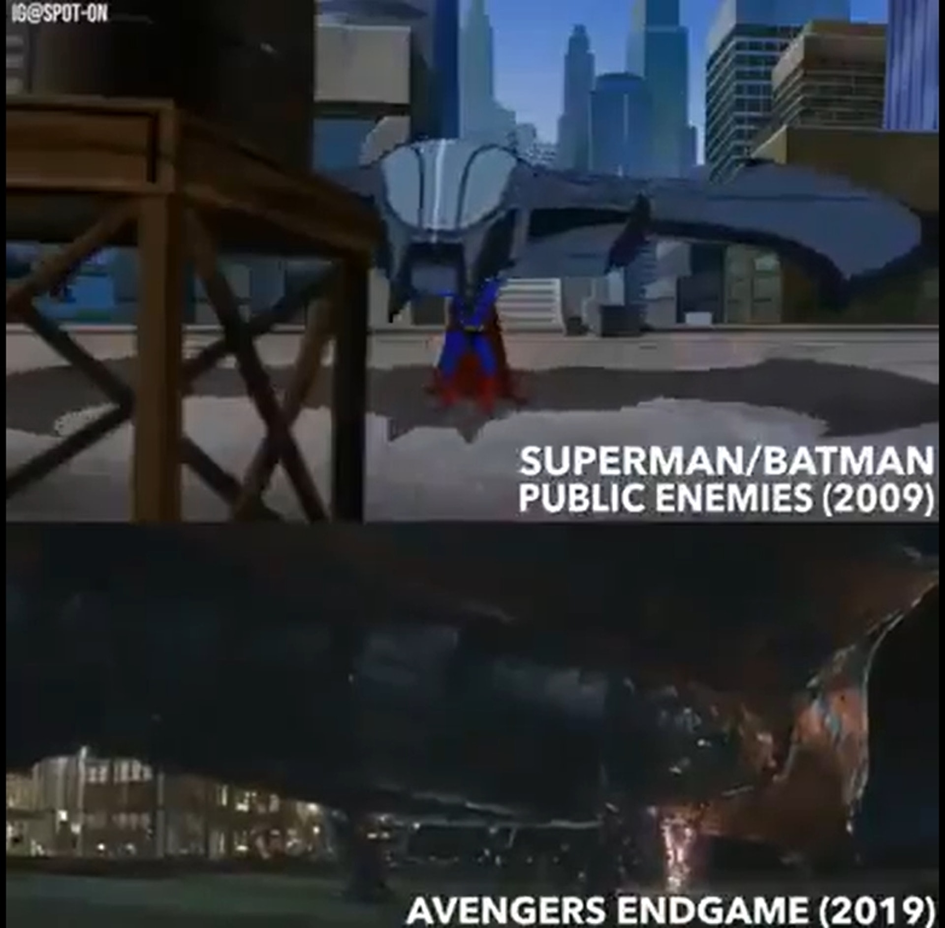 眼尖的網友「Fatal Jay」最近在推特PO出一段影片,並且寫下,「我們一直都在說,漫威的作品竊取了DC,也許這次會讓你們相信這個說法!」,從影片上方中可見,在2009年DC推出的超級英雄動畫《超人/蝙蝠俠:公眾之敵》(Superman/Batman: Public Enemies),而下方則是《復仇者聯盟4》(Avengers:Endgame)的片段,可以清楚看到「鋼鐵人」小羅勃道尼(Robert Downey Jr.)開著飛機被女英雄帶回地球的畫面,以及眾人在廣場望向天空的畫面,都像極了DC之前的作品。