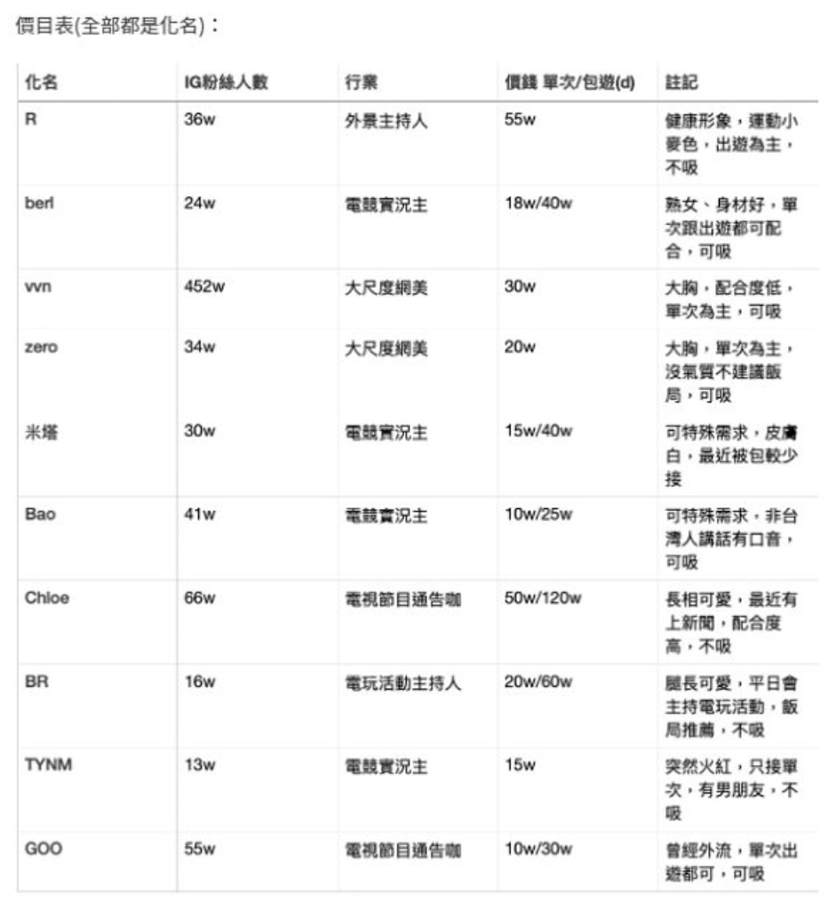 - TOP 3 親揭「網美7成都在賣」、陪睡報價單事件真相