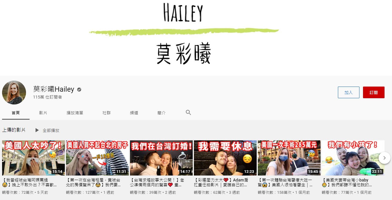 另外,從熱門創作者榜單來看,也可觀察出觀眾普遍的喜好,光是外國創作者在10位中就佔了3位,分別是美國人莫彩曦Hailey、法國人酷Ku以及韓國人金針菇 찐쩐꾸,這顯示出有一大票台灣人喜歡「文化差異」與「異國文化」這類的主題。