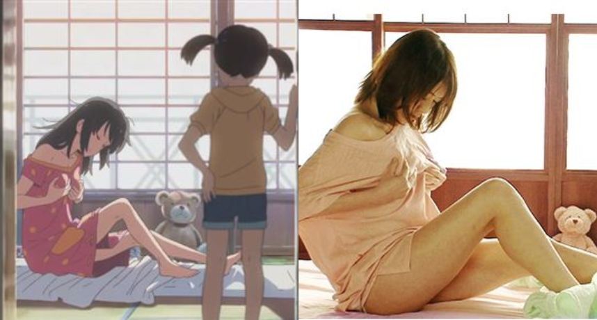 此片找來了有「地表最強E奶」封號的女優「涼川絢音」演出女主三葉,且劇組也非常用心的還原佈景,連男主變成女兒身後好奇「自摸」的片段也收錄進去了,可謂是誠意滿滿啊!
