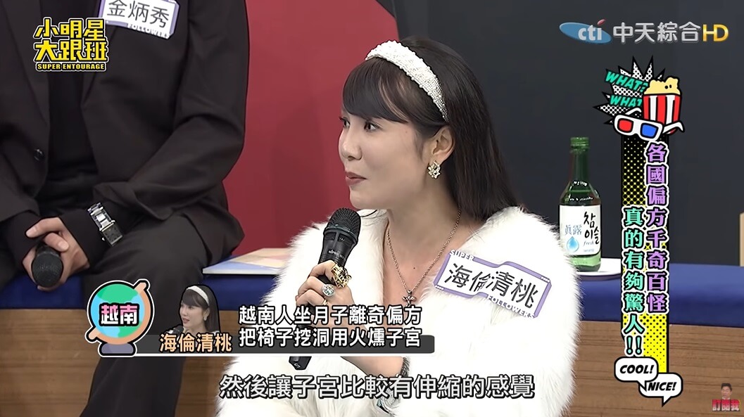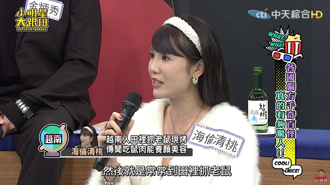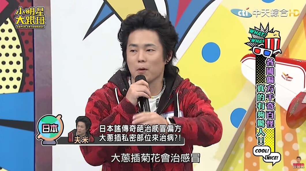 最近在《小明星大跟班》節目中,找來了各種國家的代表來上通告,跟大家分享一下各國千奇百怪的偏方,其中海倫清桃就分享了越南人會到田裡抓老鼠現烤來吃,說傳聞中吃鼠肉可以養顏美容,而夫米則是分享了日本謠傳的奇葩治感冒偏方,只要拿著大蔥插進「菊花」裡面,就可以治感冒,讓來賓們聽了都覺得好不可思議!