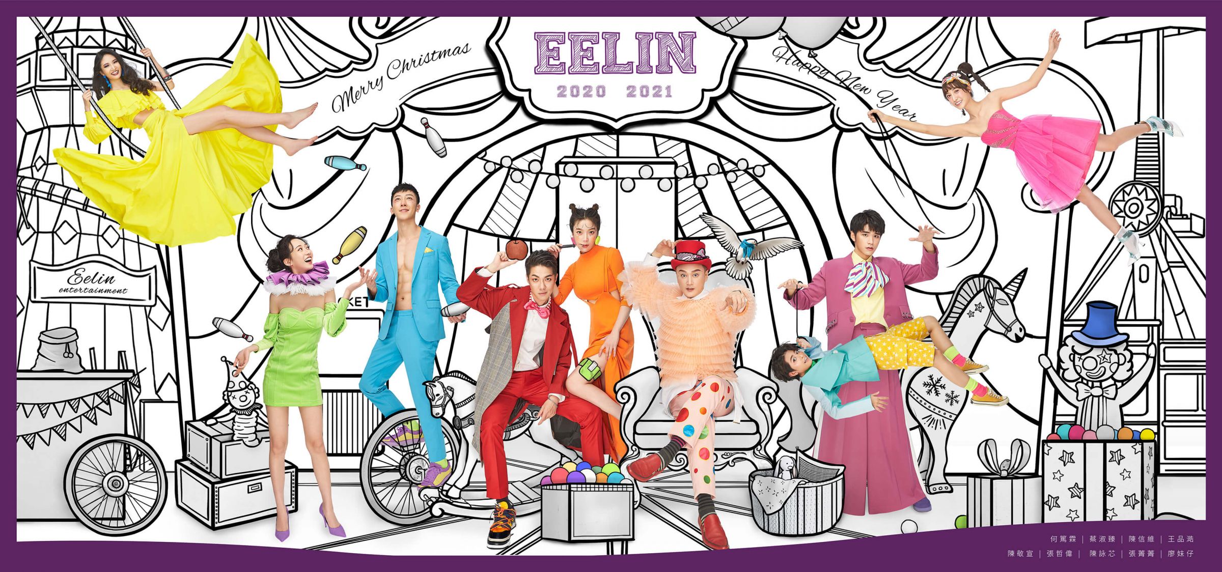 2020年全球疫情嚴峻,伊林娛樂拍攝聖誕新年主題「歡樂馬戲團」賀卡,名模藝人變身馬戲團人物,傳遞歡樂正能量,期待牛年「牛」轉乾坤,平安喜樂。新加入伊林大家庭的藝人何篤霖及金鐘獎女配角得主蔡淑臻,領軍伊林新生代,包括網紅廖妹仔,她在TikTok發布一支舞蹈影片,突破5000萬次觀看,榮獲TikTok「2020年度十大影片」,及在戲劇《天之驕女》受到粉絲關注的王品澔都登上賀卡。