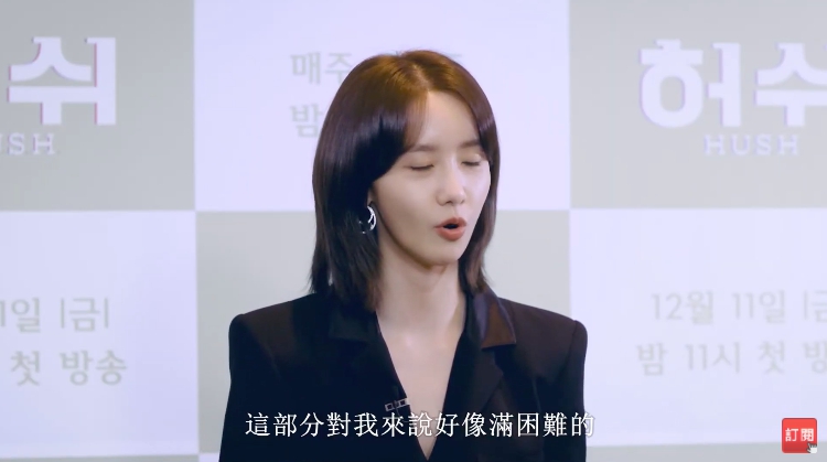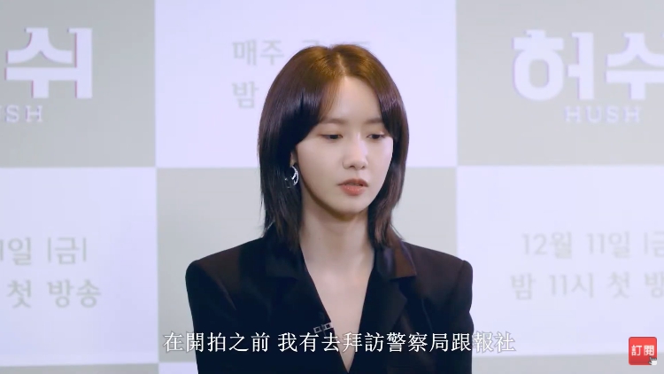 人氣韓劇《Hush沉默警報》由黃晸玟以及跟「少女時代」成員潤娥攜手演出,劇中直擊人心的寫實台詞引起不小迴響。首度合作的兩人默契十足,接受愛奇藝國際站專訪時,潤娥提到為了更貼近角色,在開拍前,自己特地拜訪警察局跟報社,跟記者們互動交流。