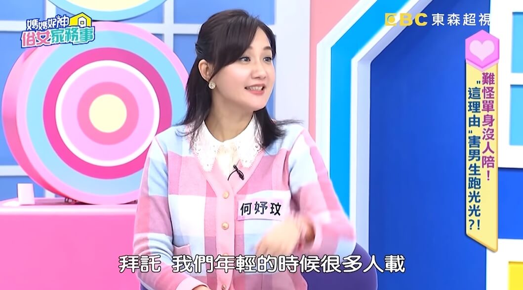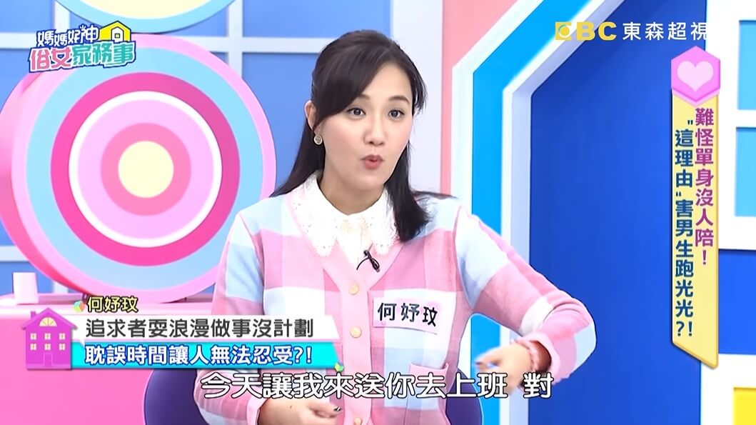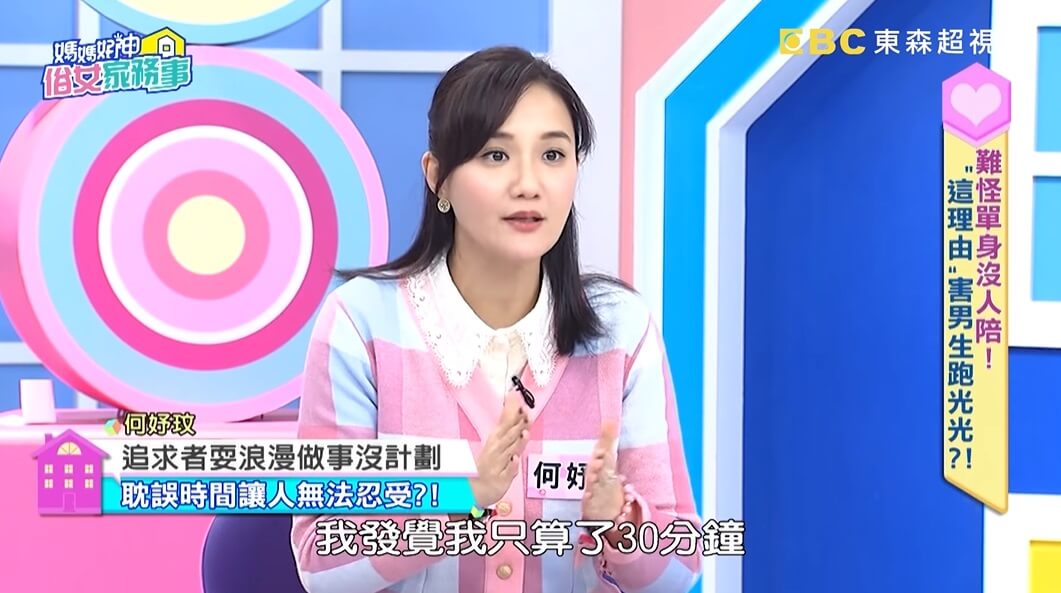 在節目中,何妤玟也認真表示,年輕時那些追求者都很樂意載她去電視台錄影,「只是我是一個很愛計畫的人,每天行事曆上都規劃好好的,都抓30分鐘的車程到攝影棚!」不過,她認為過往那些追求者們,「都沒有做好準備!」
