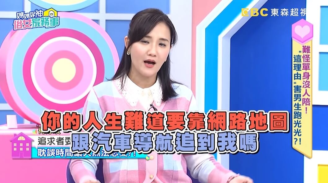 何妤玟接著解釋,「有遇過路途中停下來買小吃的人,還有前一天已經講好要去哪裡錄影,結果上車之後,對方才開始用導航要找路怎麼走!」讓她非常生氣的直接嗆對方說,「難道你要靠網路地圖跟導航來追我嗎?」後來這段姻緣當然也就不了了之,現場來賓聽了也都忍不住說,「人家都願意載你了,怎麼會這樣說?」不過何妤玟依然表示,「我以前很多人載的~」。不少網友看完後都紛紛直呼,「感覺會一輩子單身耶...」、「大概只有年輕的時候可以這樣,老了就要收斂一點」。