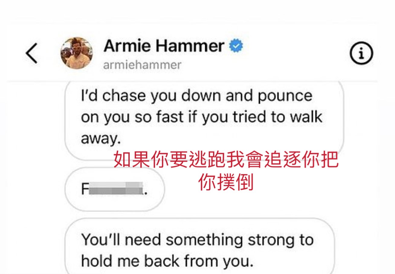 現年34歲的艾米漢默因為俊俏外型獲得不少女粉絲喜愛,不過日前英國媒體卻報導,他多年來透過社群軟體INSTAGRAM發送「變態、情色」訊息給多名女子,內容談論強姦、性虐待、打斷骨頭,甚至還向這些女子表明自己有「食人主義」等變態話題,而這些內容都被截圖公開,消息震驚好萊塢引發不少網友議論。