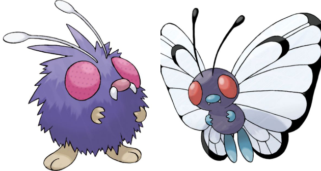 這項都市傳說干係到兩種進化鏈的寶可夢,分別為「巴大蝶」以及「摩魯蛾」家族,有玩家指出巴大蝶的長相與摩魯蛾的進化前身「毛球」的特徵十分相似,都有一雙紅色的複眼,以及紫色的身軀,而摩魯蛾卻與巴大蝶的進化前身「鐵甲蛹」眼睛的模樣如出一轍。玩家推測可能是官方不小心將兩種進化型的插圖搞錯,發現有誤時已經來不及,於是將錯就錯將遊戲發行。