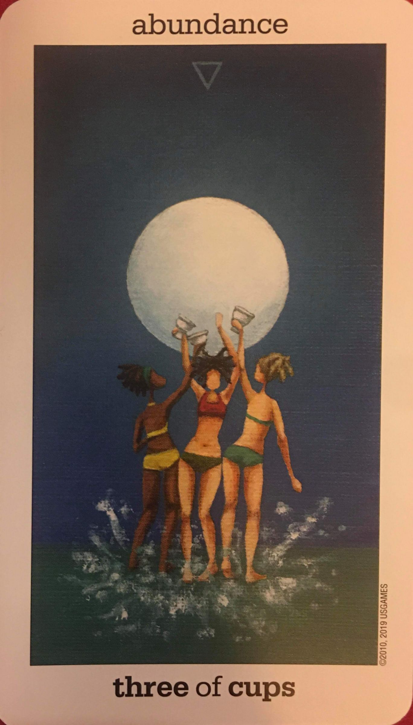 牌面上的三位女性舉起聖杯相碰慶祝,代表和諧美滿的情誼;牌卡正中又大又圓的月亮則為潮汐和感受帶來了巨大的影響力,也提醒你在水逆期間,要特別留意多喝水,情緒及生理期的變化。這段時間會有不少人際交流的機會,凝聚感情、連結人脈固然很好,也別忘了戴口罩和勤洗手,一起樂活防疫喔!