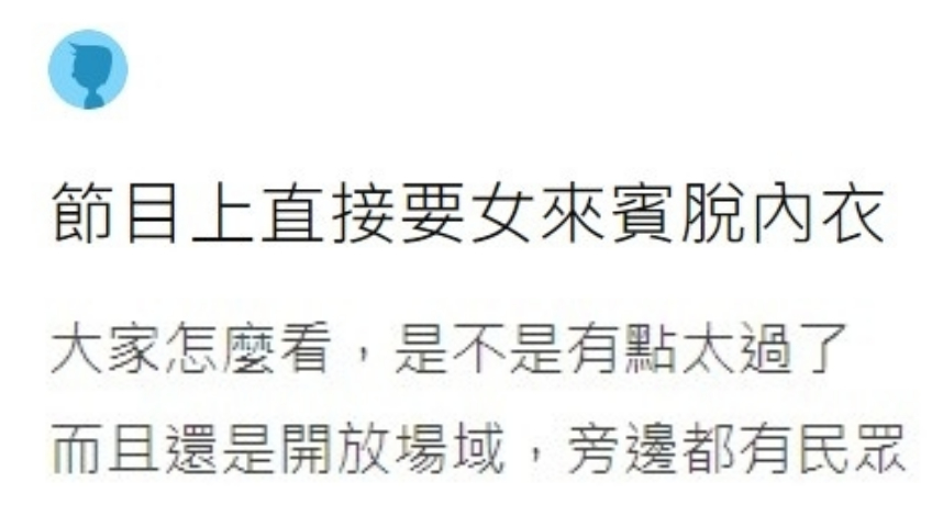 台綜節目上要求女藝人脫內衣?網:這會不會太過了?