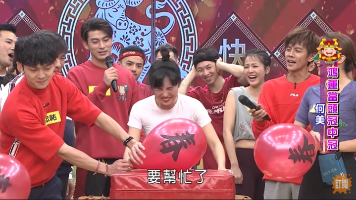 遊戲開始後女素人盡力靠自己撞破氣球,沒想到氣球因反作用力就是撞不破。心急如焚的老公在一旁幫忙,沒想到滿手刺青的他竟直接抓住女素人的頭狂撞氣球,在場所有人都忍不住狂笑,更逗趣地一同在唱梁靜茹的名曲《分手快樂》笑指「妳可以找到更好的」!