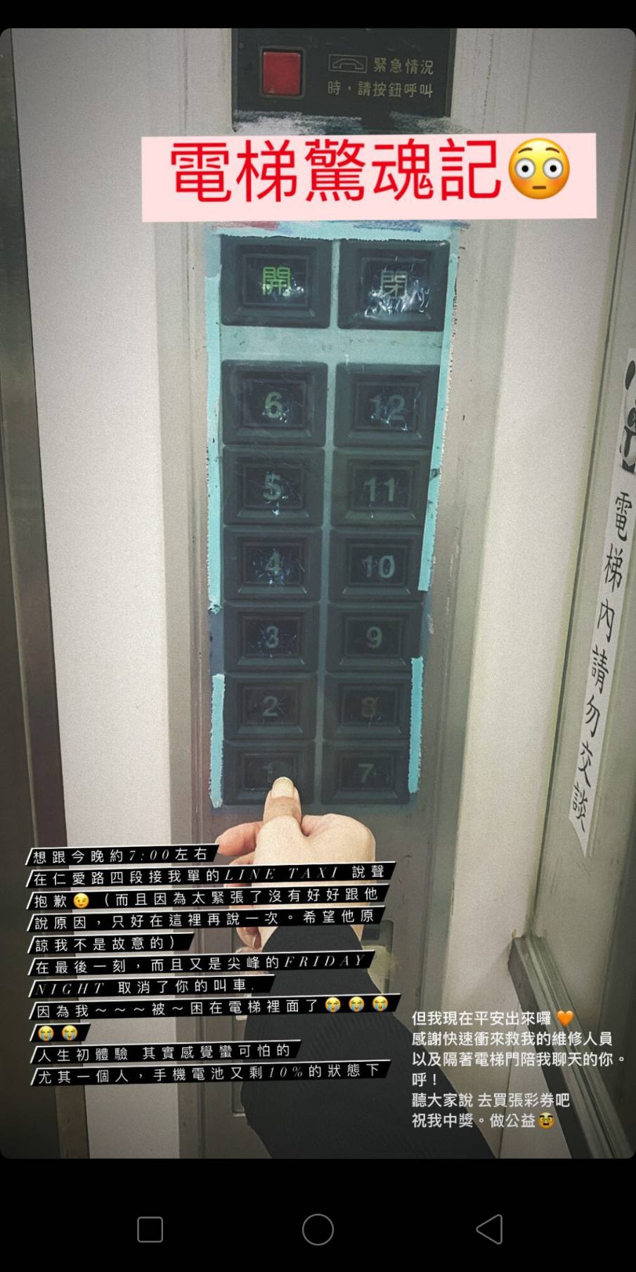 陳庭妮受困電梯 ! 手機竟僅「剩10%」 驚險逃脫