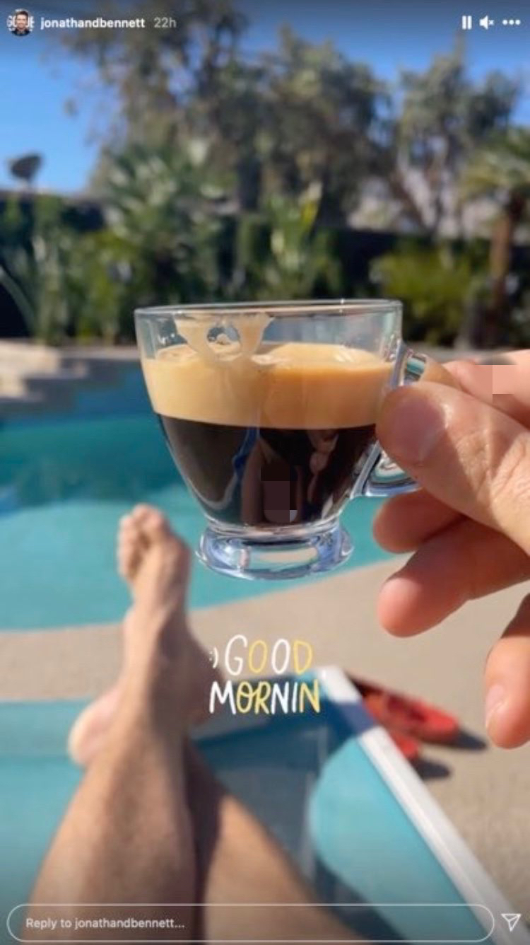 國外網站《hitc》報導,現年39歲的美國男星強納森班奈22日在INSTAGRAM限時動態上傳了一張照片,他坐在自家泳池旁享受日光浴,拍下自己拿著咖啡並配上文字「早安」的照片,但是卻不小心被杯子的反光倒影照出全裸的下半身,露出雄偉的「私密處」!儘管照片已被他刪除,但立刻就被網友截圖放上推特,成為最新社群熱門搜索。