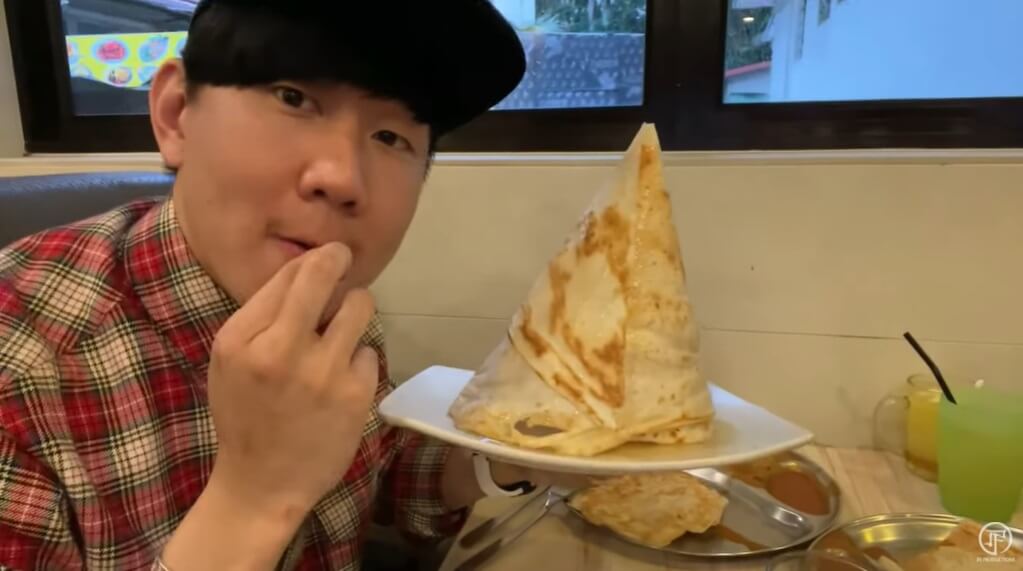 林俊傑24日在Youtube上開直播,跟大家分享他到新加坡餐廳享用美食的心情,從畫面中可以看到,他開心地介紹「印度煎餅」,還一邊吃給大家看,吸引了上萬人前來觀看!大家都非常喜歡林俊杰以這樣的方式開直播,不少網友都留言表示,「別吃太油哦!保護好喉嚨」、「下次可以點歌嗎?想聽你唱刻在你心底的名字」、「哇~男神吃什麼都感覺好好吃」、「什麼時候你也變成吃播主了啦!」、「哈哈哈美食博主JJ已上線!」。