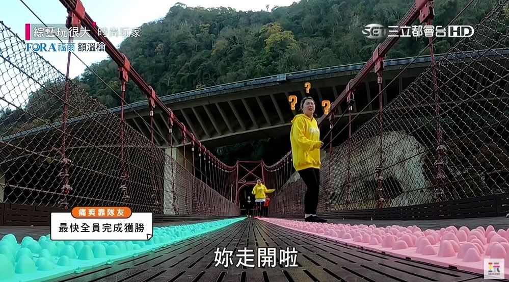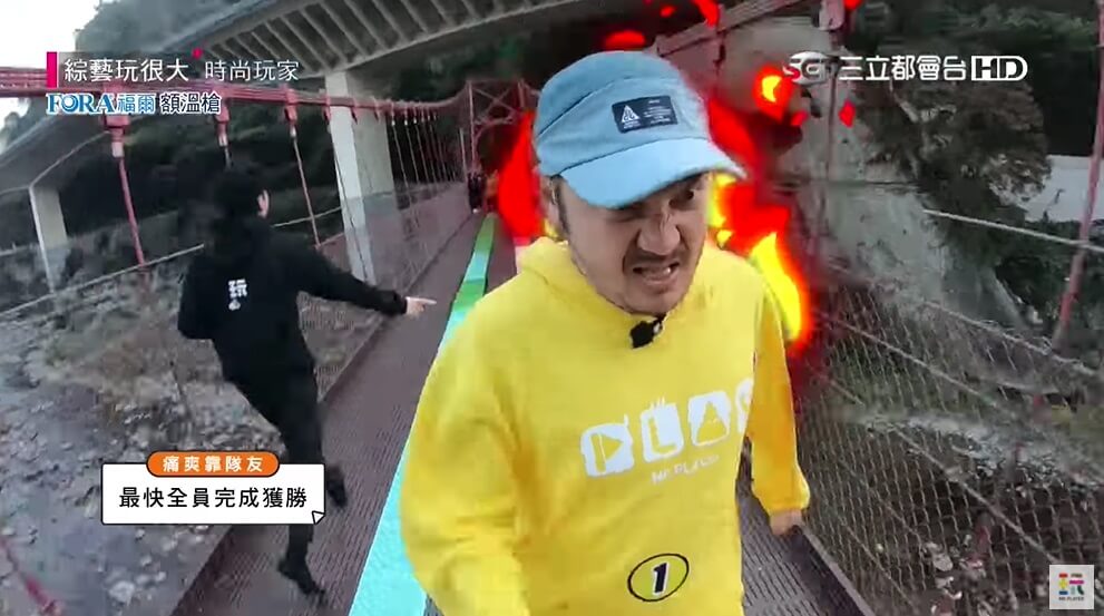 焦凡凡最近參與《綜藝玩很大》的錄影,她跟吳宗憲、KID、貝童彤組成「黃隊」,要來跟「黑隊」的路嘉怡、Kevin、夏和熙、郭源元對抗,沒想到在其中一關要由兩隊隊員踩健康步道,從吊橋的頭跑到尾,兩隊分別派了吳宗憲跟路嘉怡來闖關,而KID則因為憲哥在第一次闖關失敗,他必須得忍痛來回奔跑,當下跑完整個已經痛到臉都扭曲了!