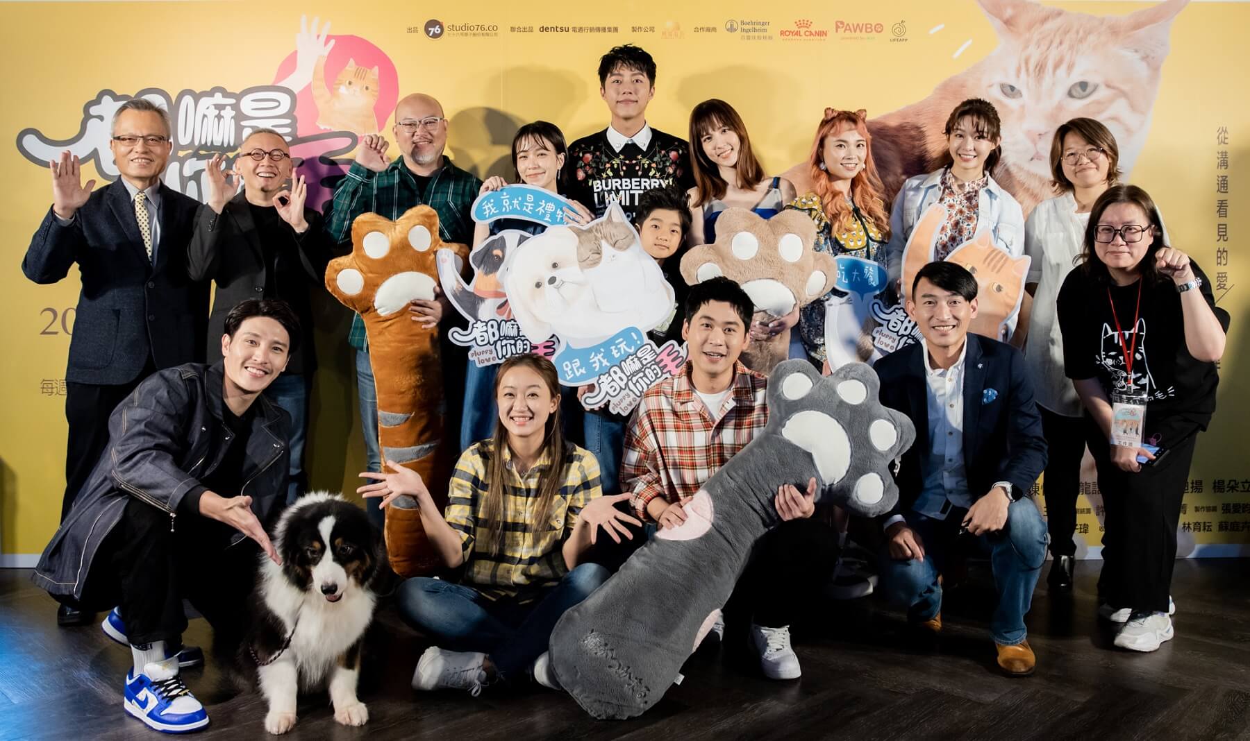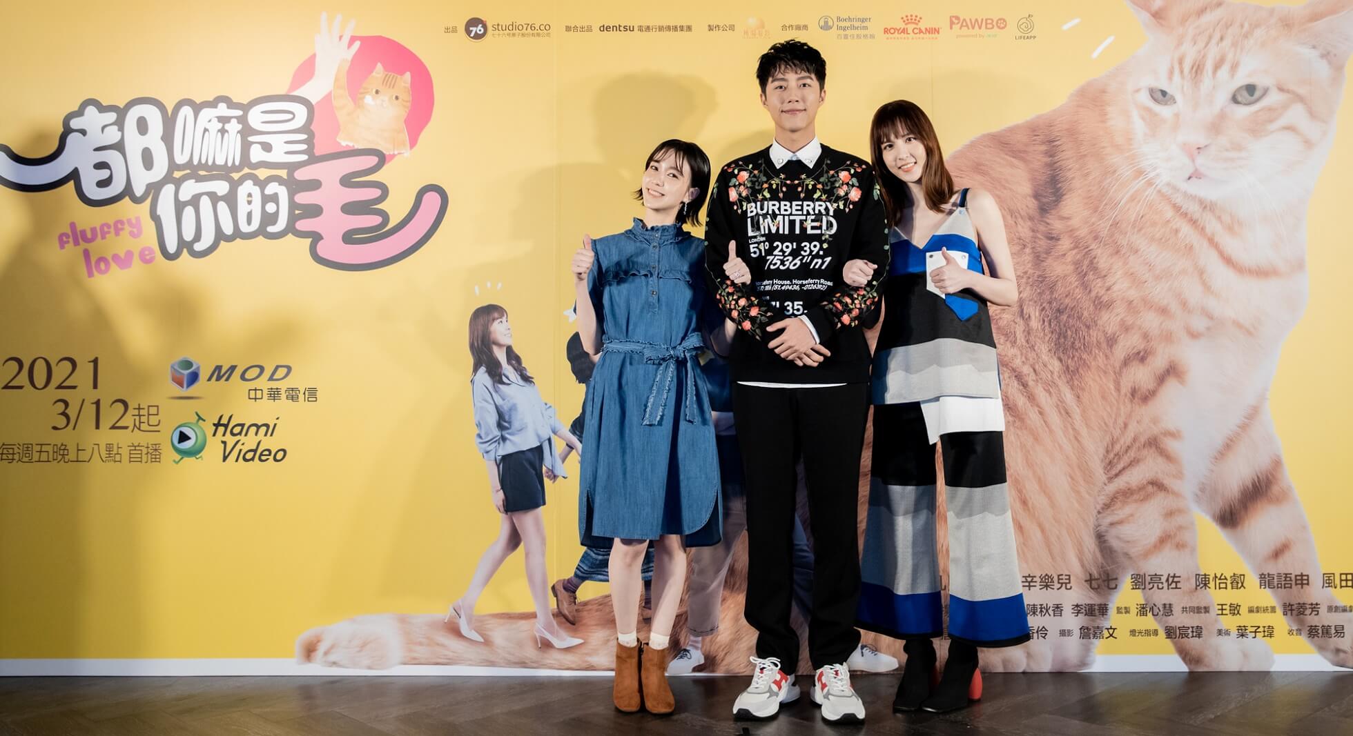 《都嘛是你的毛》由七十六号原子與dentsu電通行銷傳播集團共同出品,與中華電信首次合作原創職人迷你劇集,將於3/12起每週五晚上8點於Hami Video及MOD首播,今(3/12)舉辦首播記者會,蔡凡熙、魏蔓、辛樂兒、劉亮佐、龍語申、陳怡叡、黃迪揚等主要演員齊聚一堂,也邀請動物演員狗狗小傑,幕後功臣動物訓練師Miki、動物溝通師春花媽,主題曲演唱歌手PiA,以及為狗狗小傑配音的演員白潤音到場。