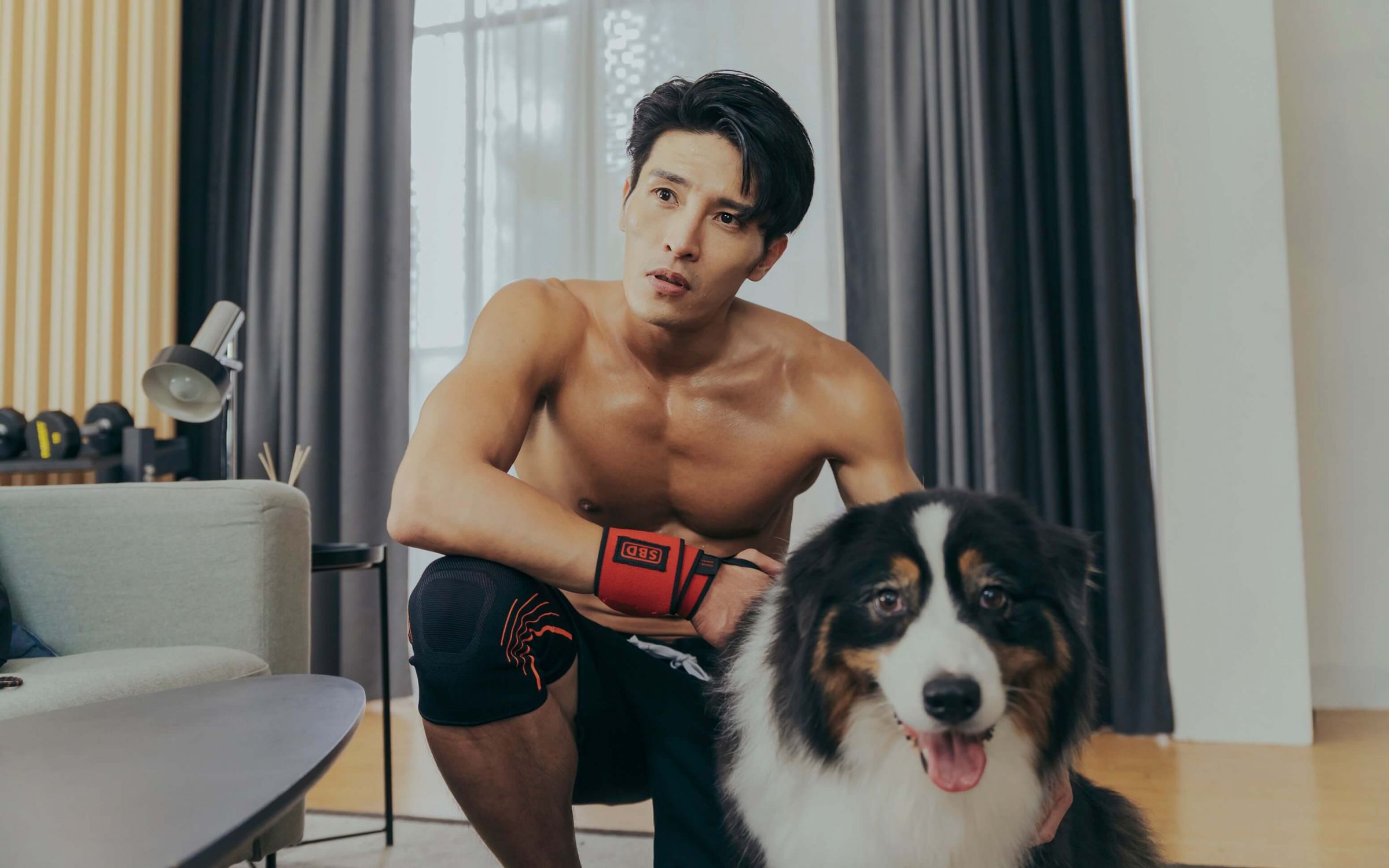 肉體擔當龍語申在劇中飾演健身Youtuber,經常帶著狗狗小傑一起訓練,抱起30公斤重的狗狗如舉重般深蹲再舉起,讓龍語申拍到講台詞時氣都喘不過來,導演喊卡之後,直接累癱,龍語申笑說:「我平常也會跟家裡的狗狗一起互動,但牠們是博美,沒有小傑這麼壯、『壓力』這麼大。」不吝嗇秀出滿身肌肉的龍語申,戲裡戲外都熱愛健身,記者會現場邀請蔡凡熙一起PK爭寵,蔡凡熙爆料:「他連在片場都在健身,我只想在旁邊坐著。」