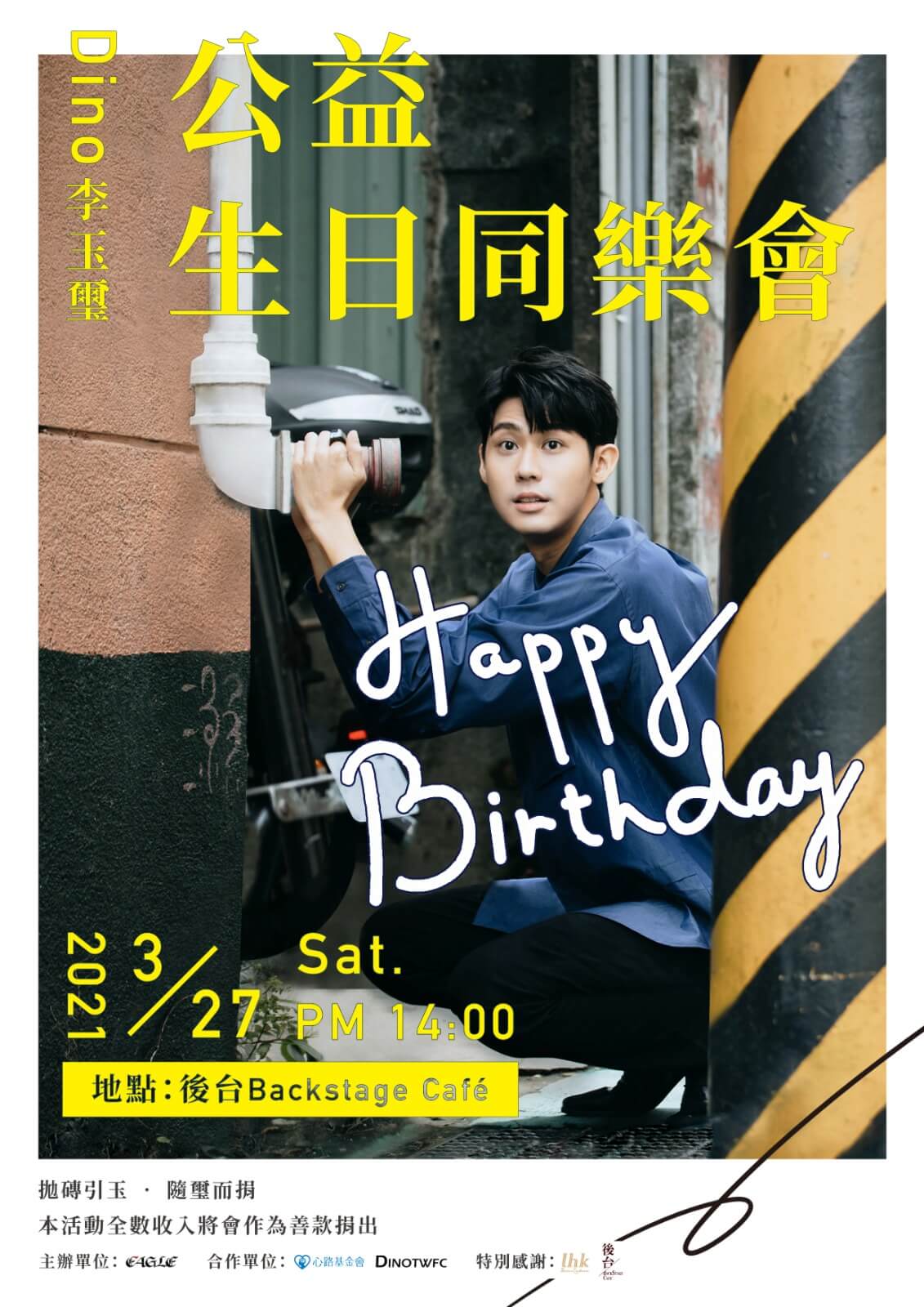 《李玉璽公益生日同樂會》將會於3月27日在台北的後台 BackStage Café 舉辦。這次活動結合心路基金會合作做愛心,入場粉絲將不收取入場費,改以於進場時邀請大家自由樂捐費用給心路基金會。