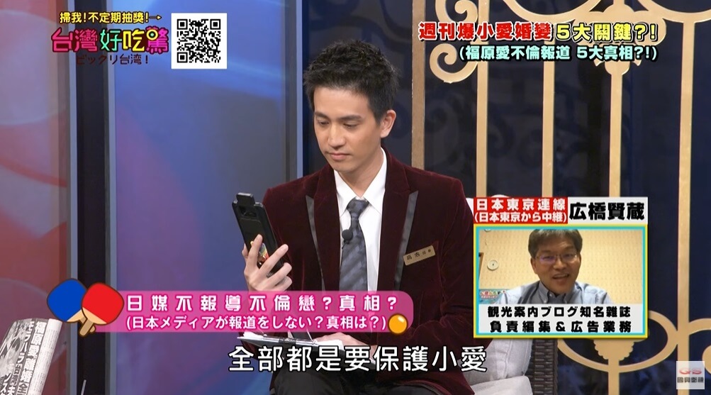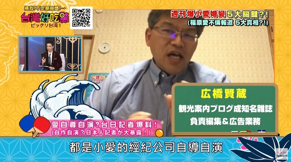 最近在《台灣好吃驚》節目中,再度談到了福原愛跟江宏傑婚變的事情,而在節目中也讓台日記者連線,談論福原愛婚變風波的事情,日本媒體人「廣橋賢藏」表示,「在事情爆發之後,大家都說《週刊文春》有一點編,想要編一些保護小愛!」
