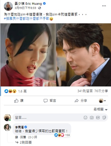 黃少祺更配以自己吃Sim卡和金素妍吃Sim卡時的對比截圖照來發文,讓女演員李亮瑾也不禁留言:「哈哈,我覺得少祺哥的比較寫實耶!」,誇讚黃少祺的演技。至於網友見到貼文後留言指「既然吞下Sim卡,為何不連手機也吃下呢?」、「嚼碎了比較好吞」、「本來要藏舌下,結果靠怎麼吞進去的樣子」等,對劇情十分津津樂道。