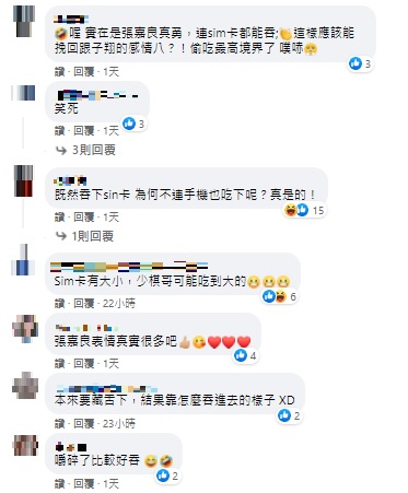 之後黃少祺眼看這一幕反應不俗,他更加碼再在臉書上發了一則影片,影片內容竟是黃少祺的兒子模仿他在劇中吃Sim卡!不過,雖然他吃的其實是鈣片,但是他模仿吃下「Sim卡」後不支倒地的反應十分可愛,讓網友看完後直指黃少祺的兒子「表演得很自然」、「有巨星的架勢」等。