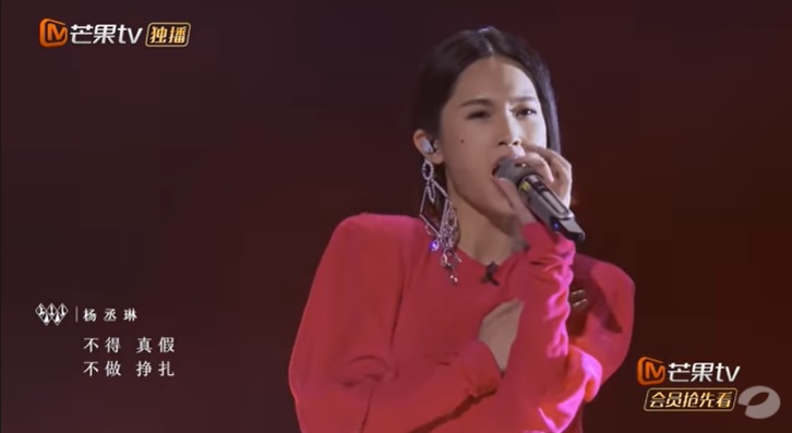 但是楊丞琳的表情並沒有呈現任何驚慌失措的異樣,當她的耳環瞬間掉落時,她一邊用右手把掉下的耳環按住,一邊表演副歌的轉音。最厲害的是,雖然在演出時發生了耳環掉落的小插曲,但是她的表情仍是表現出配合歌曲意境的倔強表現,讓網友大讚她是個十分專業的歌手。