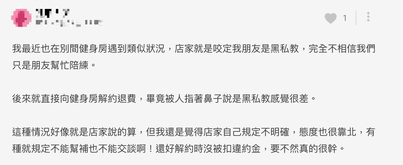 事實上瘋男決定把這件事拍成影片也是希望能給其他遇到同樣事件的人做參考,不少網友也分享自己被誤會是黑私教的事件,並表示每個健身房對私教的定義都不太相同,因為難以蒐集證據,所以也沒有一定的標準,不過也有網友認為一定是瘋男等人做得太明目張膽才會被開刀,引發網友正反兩面的議論。