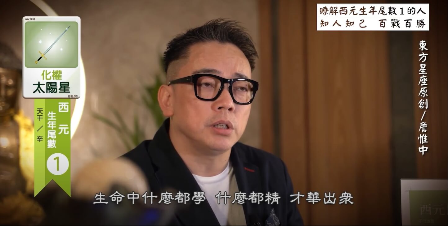 詹惟中東方星座紫微密碼|西元生年尾數1的人:知人知己、百戰百勝!