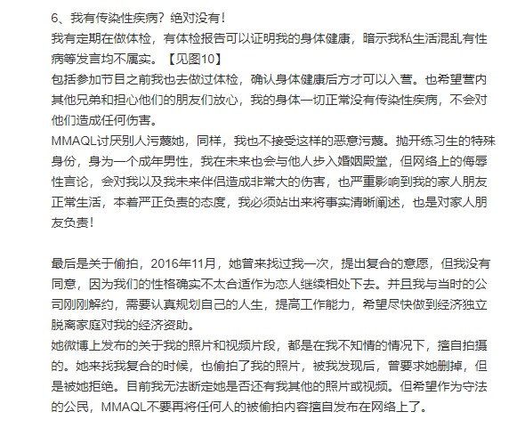 最後他也強調自己沒有得性病,從進入《創造營2021》前就曾經做過體檢,離開節目後也再做了一次檢查,並直接曬出自己定期做的體檢報告證明自己的身體十分健康,也不存在傳染性病一事。由於范臻爾一一列點回應,又在每一點都附上了圖片佐證,讓不少網友都看傻了眼,歪樓直呼:「年度公關案例就是你了」、「思路清晰、統整能力驚人」,大讚這篇澄清文寫得有理有據,因此大部分的網友都選擇相信范臻爾的說辭。