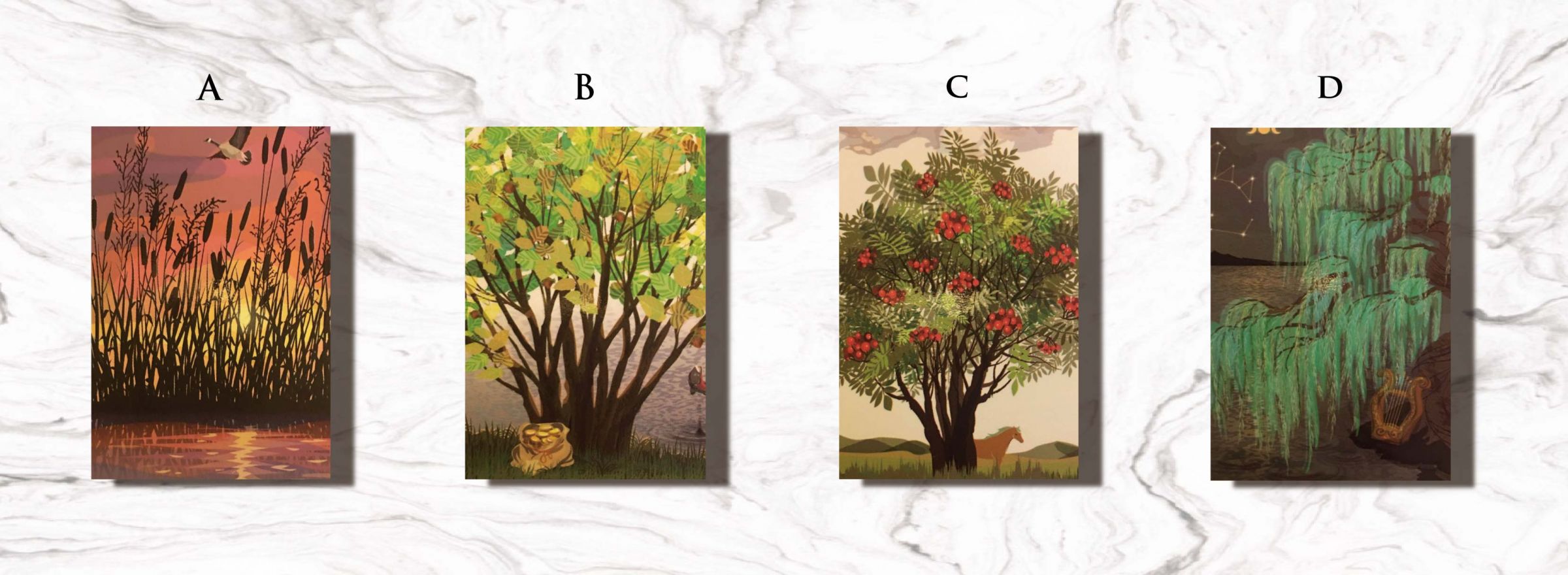 占卜私房話:凱爾特人相信萬物皆有靈性,並且連結著神祕的異界,而樹木就是強而有力的連結管道,這些聖樹甚至擁有自己的文字,也就是歐甘樹文(Ogham),這也是德魯伊祭司強大魔力的來源。透過蘆葦、榛樹、花楸、柳樹,分別送上家族、豐盛、保護、生命力的祝福,敞開內心接受這股力量吧!