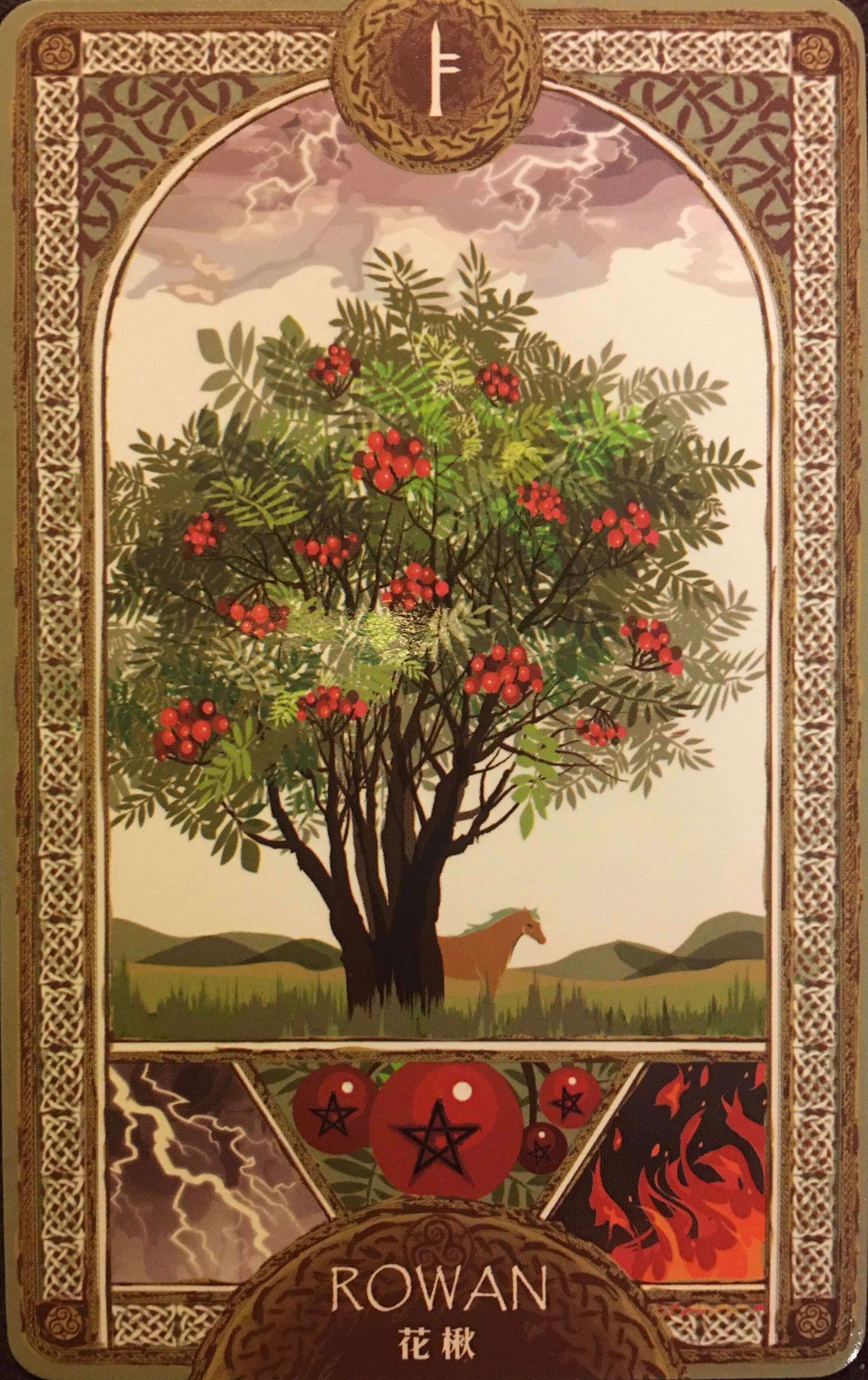 你選到的是花楸,關鍵字是「保護、僻靜所、靈感」,歐甘名則是「Luis」,代表非常豐盛與符咒,也是在提醒你,想要走出自己的路要有火焰般的決心。花楸是一種落葉喬木,生長在溫帶中高海拔地區,抗寒能力強,喜歡濕潤,象徵多產與財富,全株都有用途,也具有避免雷擊、守護牲畜及健康的作用,也提醒你留意自己或親友腎臟、膀胱與肺部的問題,包括免疫力較弱的徵兆。
