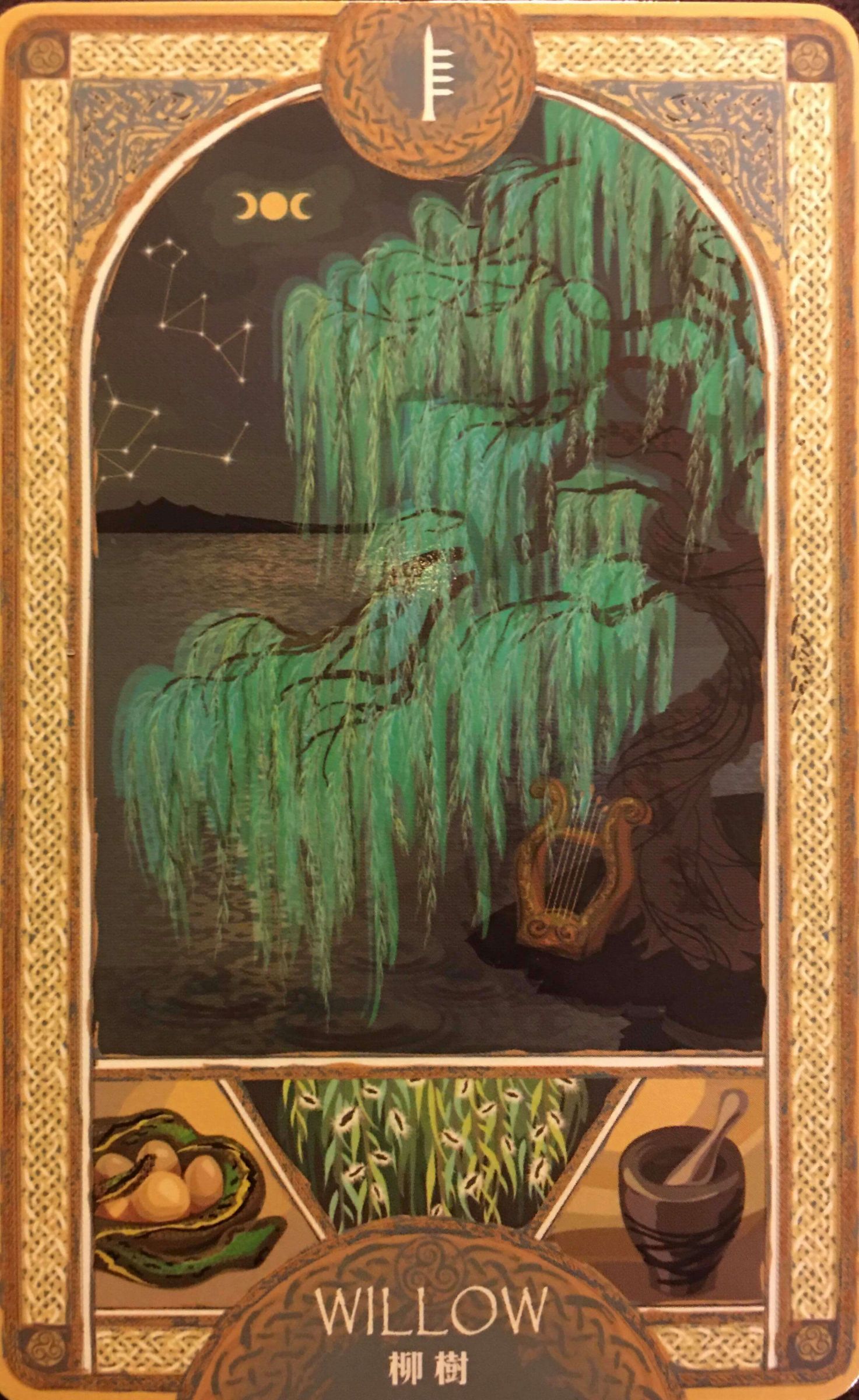 柳樹被視為預言者、祭司、占卜者的聖樹,協助我們與異界連結,獲得強大的神聖力量,能夠增強靈感直覺力,淨化自己,準備迎接生命中的重要神諭,也代表目前需要尋求祖靈的訊息,你的困境可能跟家族問題、家族疾病有關。柳樹將協助你從事物終結狀態走向新生,接受生命的改變,讓全新創意和靈感出現,並用同理和慈悲面對問題,不要因為一點挫折放棄任何可能的機會。