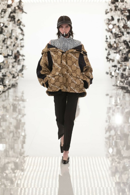 「Aria」系列融入了Alessandro Michele的中性復古風格以及Demna Gvasalia寬鬆輪廓,並以西裝、長大衣、馬靴、馬術頭盔等高端時尚生活的配件作為主體,宛如將高端時尚化為人類生存所需的「空氣」一般自然,而最令人淚目的莫過於兩大品牌Logo的結合,經典GUCCI老花配上Balenciaga至今仍令人無法相信該番聯乘,也以此打開時尚界一道通往未來趨勢的大門。
