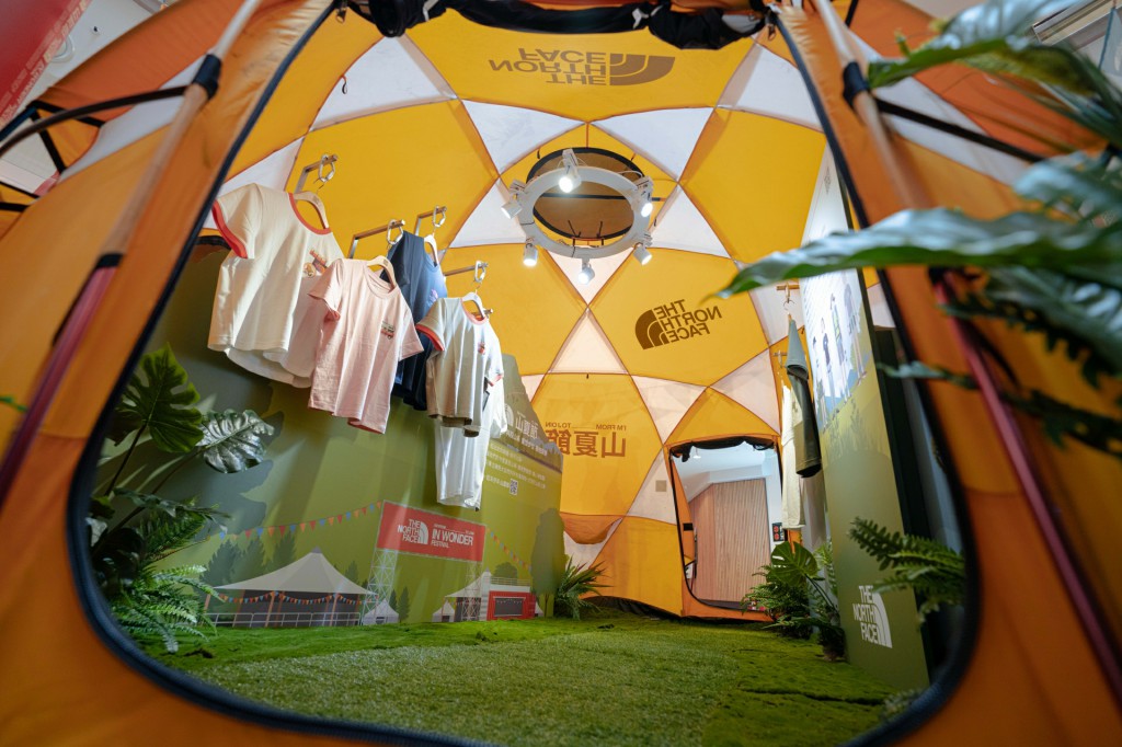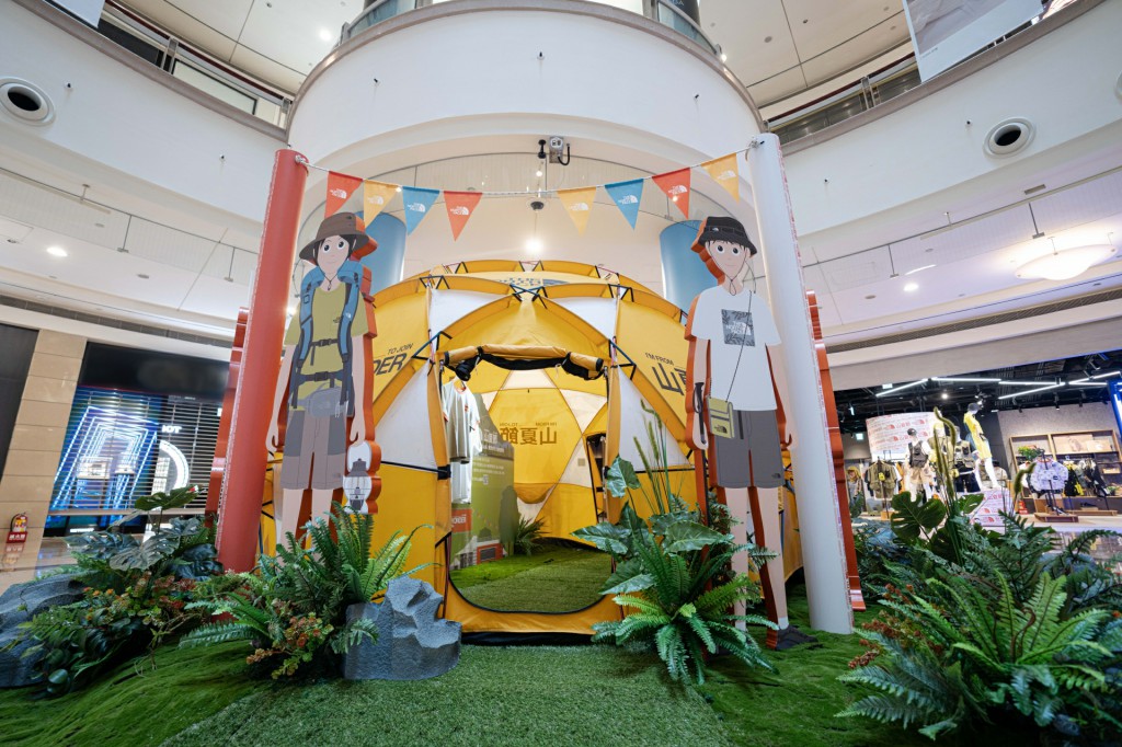 為迎接台北101旗艦店開幕,店外以品牌最經典的圓形穹頂帳打造THE NORTH FACE『山夏節』體驗站,除了在帳篷內造景陳列夏季服飾外,在5/13(週四)晚上七點鐘,也將以THE NORTH FACE圓形穹頂帳為山夏節派對舞台,邀請品牌好友LIVE表演,一同歡慶夏季的到來。