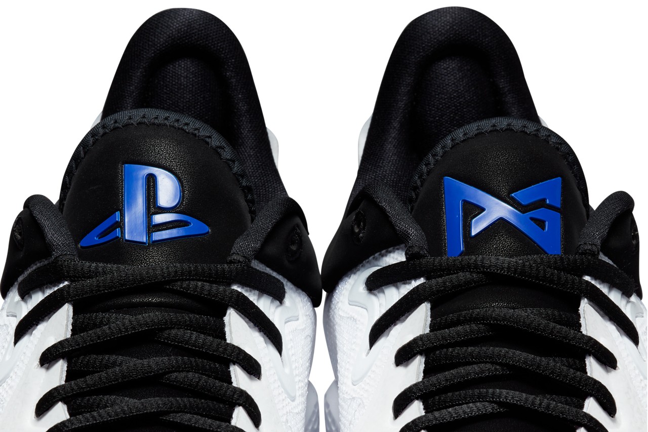這雙以Nike PG5為原型的聯名鞋履可說是細節滿載,配色上不但使用了PS5的標誌的黑白藍配色,更於鞋身上的塑膠材質打印上PS代表性的「○△□×」標誌,鞋舌與中底上的PS標誌設計同樣令人驚豔,與遊戲主機完全相同的用心設計絕對會令遊戲迷大吃一驚。