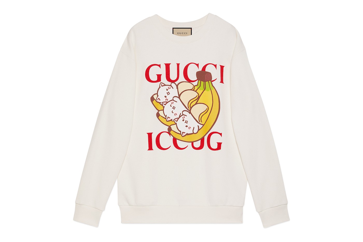 本次與《香蕉喵》推出的聯名系列包含服飾、鞋履、飾品,服飾部分GUCCI以連帽衫及大學Tee為原型,並在服裝上打印香蕉喵及香蕉喵子的燙印圖案,配上經典的GUCCI Logo呈現標誌性聯名設計。鞋履部分則於GUCCI Rhyton以及GUCCI ACE鞋型上附上可愛的香蕉喵圖案,飾品更是直接以金鍊及水晶飾品還原這個療癒的動畫角色。