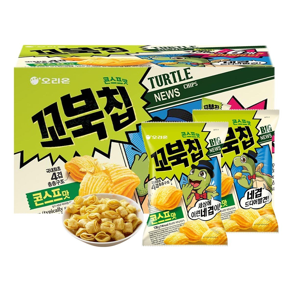 烏龜玉米脆片的風潮不需要編輯多說了吧(笑)?從韓國紅遍世界各地,當時在好市多一上架後也引起搶購的風潮。餅乾的酥脆度以及層次口感擄獲了大家的心,再加上濃郁的玉米濃湯香氣,鹹甜滋味讓人愛不釋手!除了經典口味之外,還有推出海苔、巧克力吉拿棒以及麻辣口味唷!