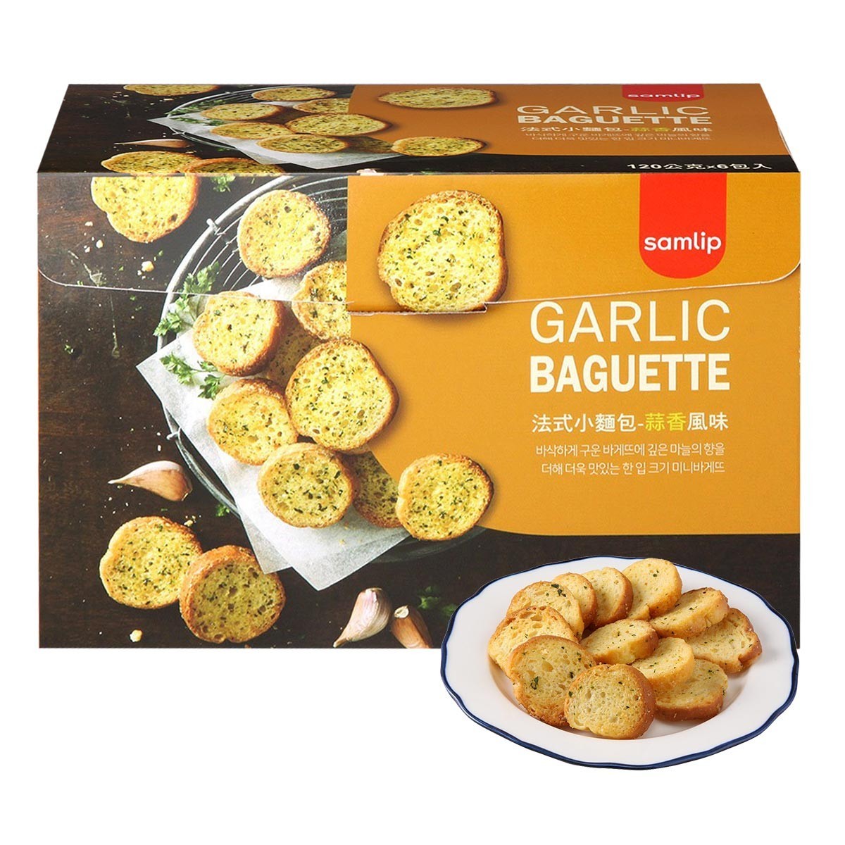 近來法式蒜味小麵包也是相當夯的零食,好市多也有進口Samlip的蒜味小麵包,大小約莫50元硬幣,咬下去濃郁的蒜香在嘴巴中散開,搭配上卡滋卡滋的酥脆口感,真的會讓人一個接著一個停不下來,搭配上一杯熱茶或是咖啡,讓你在家防疫也能夠享受美味的下午茶時光。