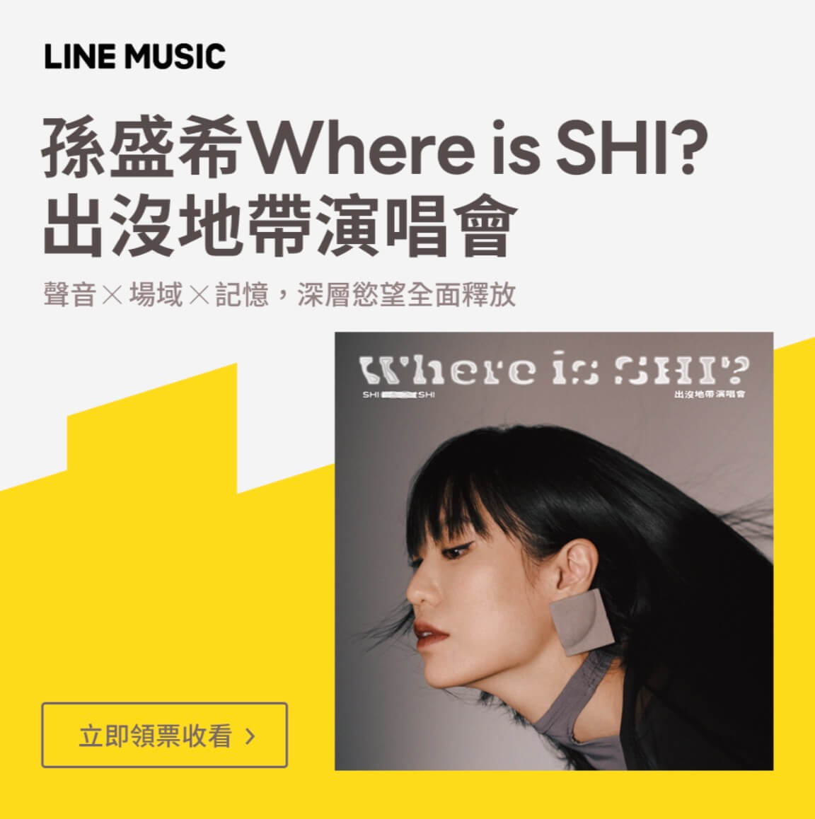孫盛希《Where is SHI? 出沒地帶》線上重播演唱會無票券數量上限,只要登入LINE MUSIC帳號即可免費取票,超寵粉福利釋出讓歌迷直呼:「太佛心了!」孫盛希表示,希望讓4/24當天錯過演出的歌迷朋友、以及還在回味的粉絲們能再次感受演唱會現場的熱情,也呼籲歌迷朋友防疫期間不要亂跑,待在家一起「線上齊聚」。