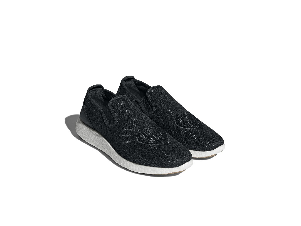 SLIPON PURE HM設計靈感來自傳統武術鞋,前衛的鞋型體現了Nigo對文化的廣泛關注。網眼鞋面上附有Human Made標誌性的心型刺繡,鞋底則以全掌BOOST ™ 科技作為支撐。此次SLIPON PURE HM鞋款,再度體現adidas Originals的經典創新與Nigo對潮流文化的高敏銳度,顛覆復古美學的前衛設計,勢必為街頭帶來不可忽視的全新風潮!