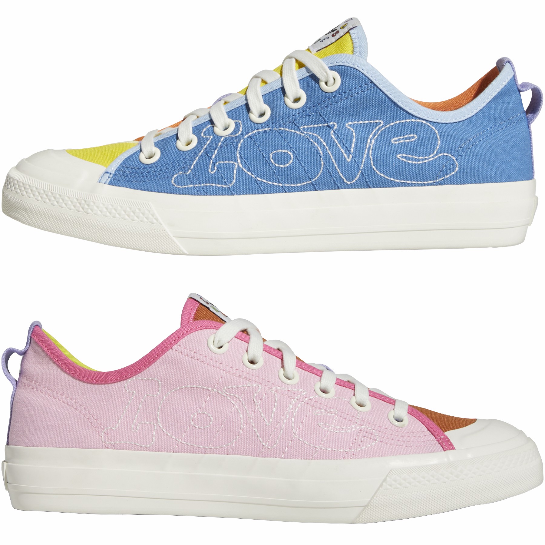 球鞋作為潮流文化中表達自我重要的一部分,豐富的色彩和醒目的圖案也躍上adidas Originals的經典鞋款上: Nizza採用撞色元素呈現,鞋身上醒目的 “LOVE” 字樣縫線串起大眾對愛的連結;Stan Smith 與 Forum 融入如同太陽般的清新圖案,在繽紛綻放傳遞愉悅;Superstar則在保留經典輪廓的基礎上,為三條紋標誌增添亮眼的色彩,是夏日必不可缺的亮眼搭配神器。