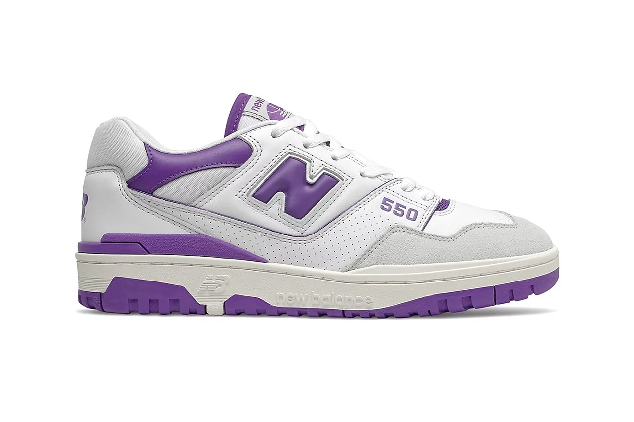 這雙New Balance 550 維持了鞋面上的多材質設計,光滑皮革上的透氣孔及做舊中底更散發著濃濃的復古氛圍,而其潔白搭配淡紫的配色正且與「宇宙帝王」佛利札相當神似,也讓這雙復古鞋履多了不少討論度。