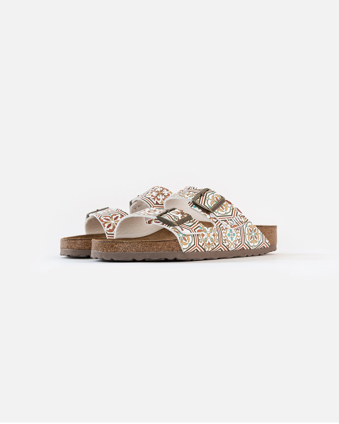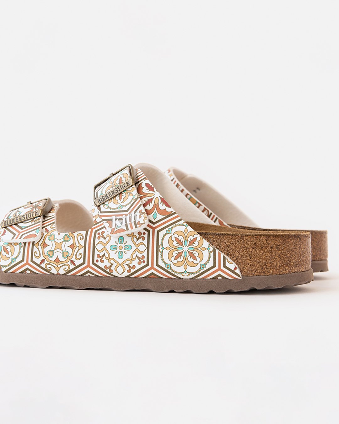 本次KITH與Birkenstock合作的「KXTH」選用了最受歡迎的 Arizona 鞋型,並以兩色復古的花磚印花圖騰覆蓋鞋身,最後於鞋帶尾端打印上標誌的KITH書寫字體,呈現濃厚的復古氛圍。除了鞋履的合作外,KITH也將此次的花磚設計運用上T恤及 New Era 帽款上,為今年夏季鞋履塗抹上一筆頗具藝術的巧思。