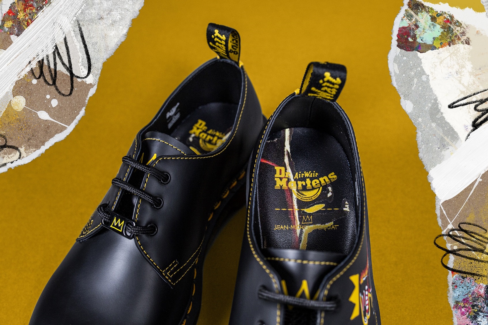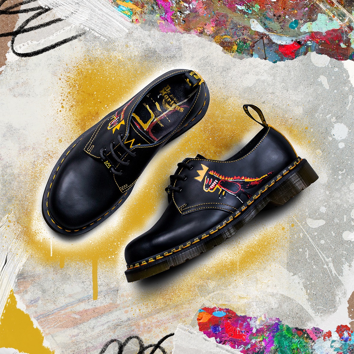 由街頭藝術家轉變為文化現象的 Jean-Michel Basquiat,於 80 年代初進入藝術界。種族議題及社會政治是其作品的核心觀察,在紐約市中心的牆壁、地鐵、街道留下了他與團隊的畫作,並很快地成為紐約最負盛名的創意人之一。2021年,Dr. Martens 再次向偉大致敬,全新聯名鞋款以經典的1460八孔馬汀靴、1461三孔馬汀鞋披上 Basquiat傳奇畫作“Untitled”和“Pez Dispenser”;1460 Basquiat以畫作“Untitled”(1982)包覆鞋身,採用 Smooth光滑皮革製成並繫上黑色鞋帶,鞋底及後跟等細節處更有 Basquiat 經典的皇冠圖案。