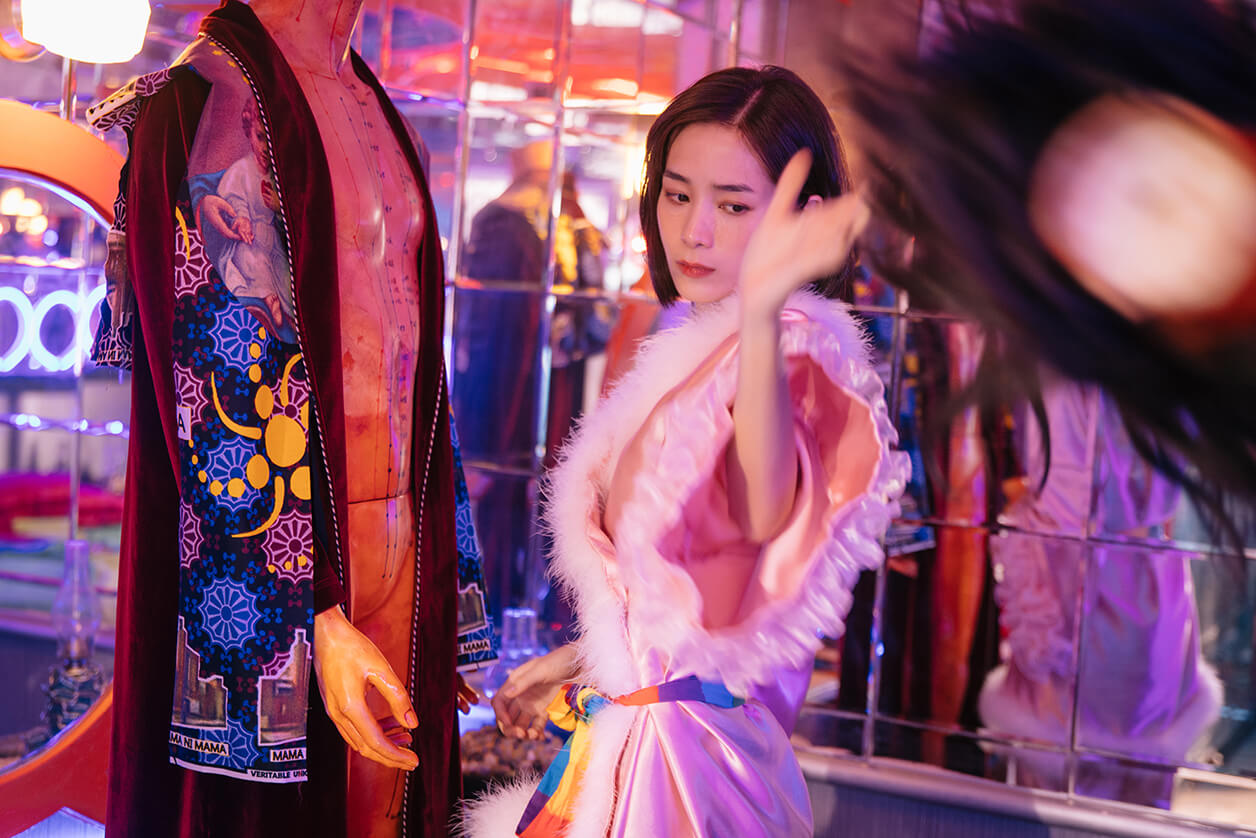 温貞菱透露:「當天處於久違沒有開工,一聽到導演喊Action就像聽見比賽槍聲,全身細胞都回來。」片中她面對背後靈十足驚恐害怕,但戲外她非但不怕,還充滿好奇的直盯著看,笑喊:「我很喜歡這樣的特效化妝或是魔物,近看覺得好像藝術品。」對於形象廣告中的打鬥畫面,她也笑喊畫面衝突又好玩,「像是我們臨機一動想到十指交扣,感覺很適合這次高雄電影節主題,讓人腦洞大開的謎幻樂園。」她也分享了自己在隔離期間彷彿發現全新的自己,透過整理和廚藝有了新發現,也更珍惜與家人、毛孩相處的時光,最特別的是她在家除了重訓,還會在家自主呼吸訓練偽潛水,過得相當充實。