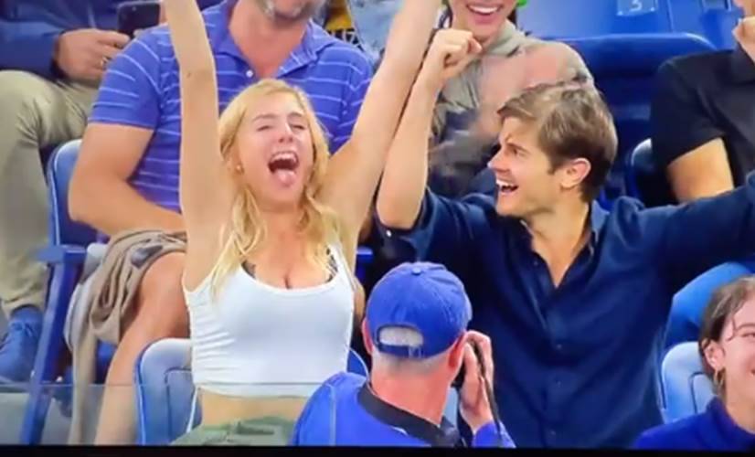網球年度四大盛事之一的「美國網球公開賽」(US Open)於上月底正式開打,雖然「瑞士天王」費德勒(Roger Federer)與「西班牙蠻牛」納達爾(Rafael Nadal)都因傷退出比賽,少了許多看點,但場邊的觀眾也意外成為關注的目光!4日在紐約進行的賽事中就有一名金髮辣妹被轉播鏡頭帶到「特寫」,她在發現自己被拍後興奮地立刻拿起手上的「啤酒」乾杯,引發全場歡呼,豪邁的模樣也讓她立刻在網路爆紅!