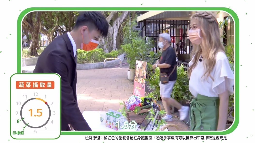 要如何了解自己的營養夠不夠呢?阿部瑪利亞特地準備了測量儀,透過手掌皮膚就能推測身體的蔬果營養狀況!在隨機實測時,就屢屢發現12分的測量中,無論大學生或上班族普遍落在3分左右,甚至有1.5分的超低分數出現,讓阿部瑪利亞驚呼「這個蔬菜營養打妹爹斯」!