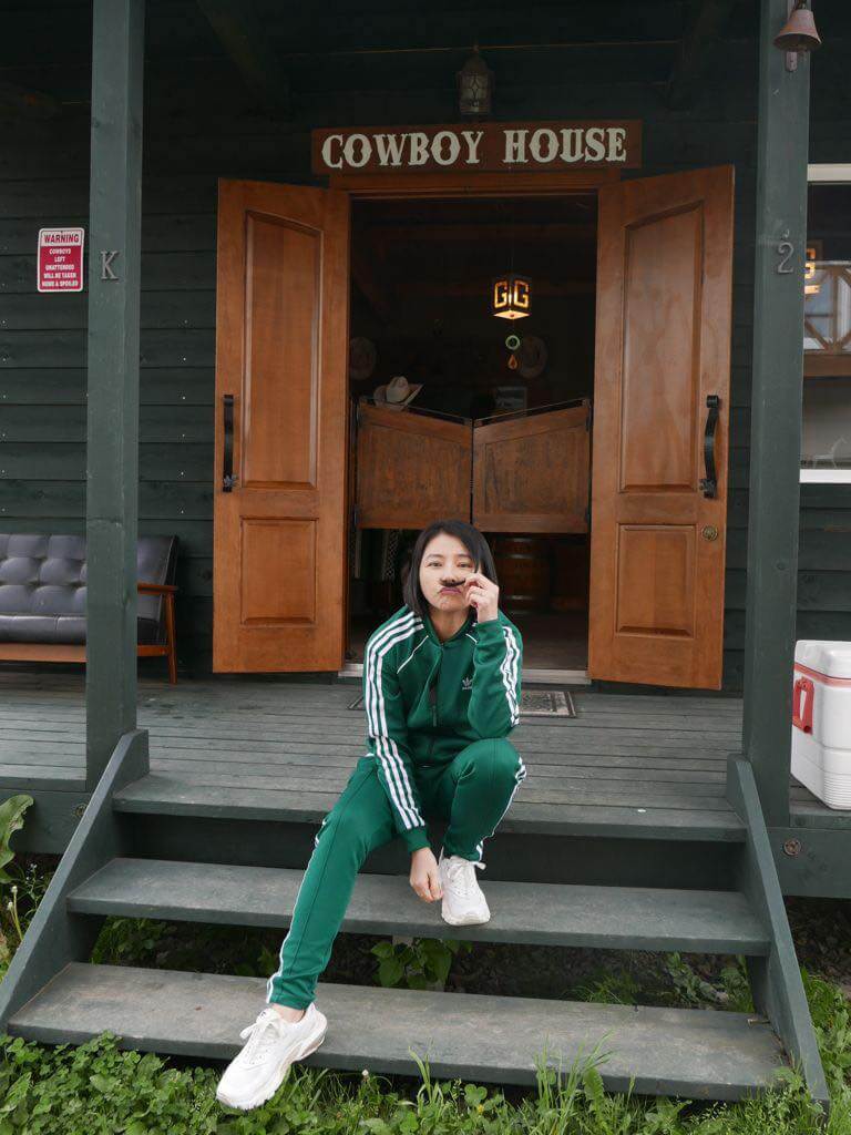 從照片中可以看到,陳怡蓉身穿一身綠色套裝、上身與下身的知名運動品牌三條線、白色跑鞋、玩弄俏麗短髮,霸氣坐姿也藏不了俏皮模樣,她也幽默表示,「沒想到有人2年前就參加過魷魚遊戲」、「我走得真的好前面~」除了衣褲白線條有些微的差異,照片乍看之下還真的跟《魷魚遊戲》內的參賽者穿著一模一樣!
