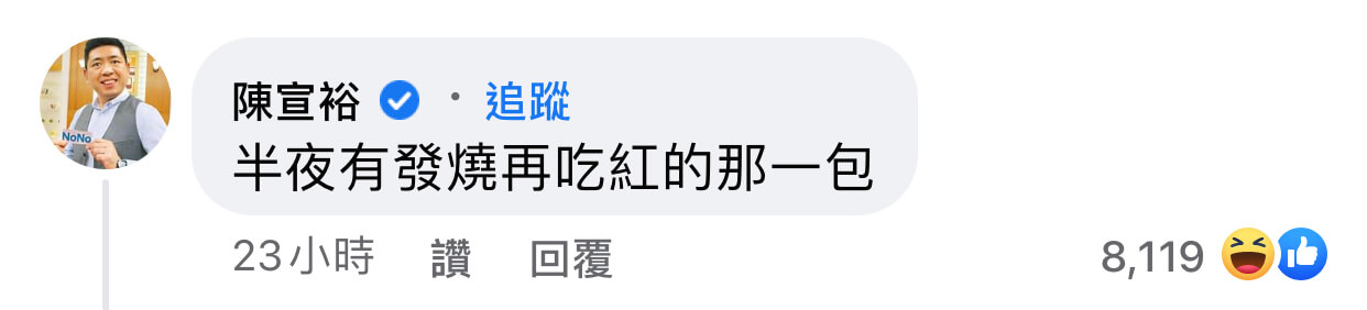 對比照一PO出,再度掀起熱烈回覆,藝人好友們一個個毒舌吐槽,像是NONO就回說,「半夜有發燒再吃紅的那一包!」阿Ben、徐小可夫妻也接著留言,「醫生說要記得飯後吃藍的,發燒再吃紅的,然後是不是還有一包治眼睛的沒有拿到?」砲火猛烈,但也帶來不少「笑」果!