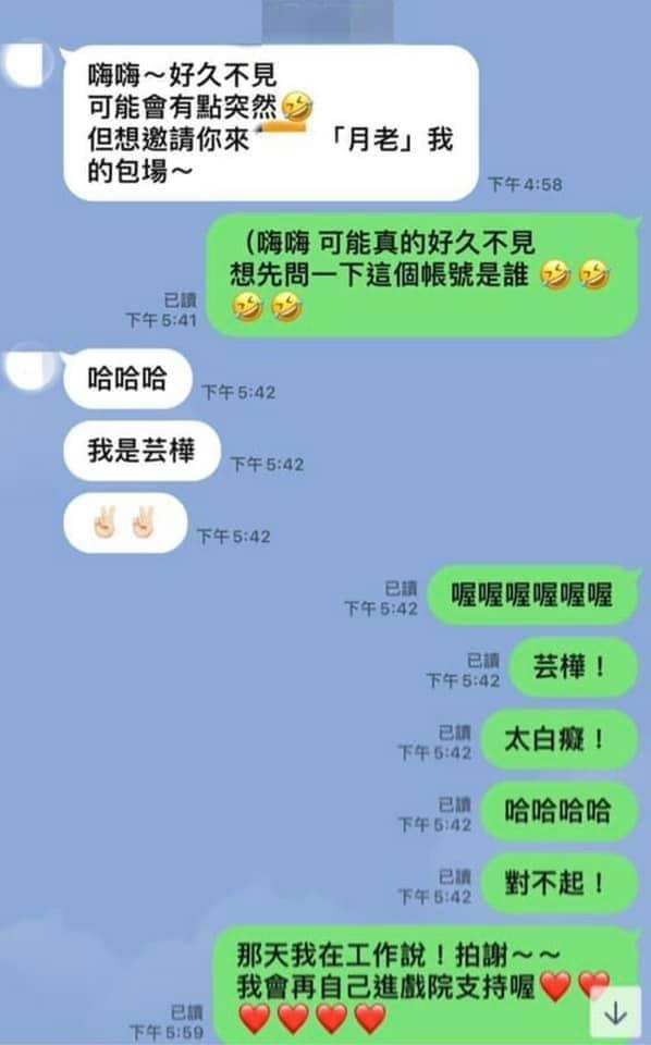藝人Lulu先前才在臉書分享自己與宋芸樺的尷尬對話截圖,透露自己收到對方的邀約,卻因為不知道對方是誰而反問「這個帳號是誰」,後來得知原來是Lulu換了手機,糗到讓人超尷尬!不料,宋芸樺最近也分享自己碰到類似的事件,透露自己成立了一個群組,當大家聊得正起勁時,才驚覺自己「加錯人」,讓不少網友們看完都笑到不行。