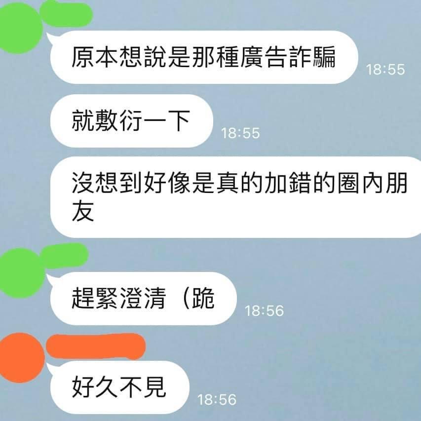 在發現自己加錯人之後,宋芸樺馬上仔細詢問對方是誰,才得知自己加到一樣是「圈內人」的李友廷,意外引發一陣爆笑!至於為什麼李友廷可以在群組裡面聊天聊這麼久,他也尷尬坦言,「本來想說是那種廣告詐騙,就敷衍一下,沒想到好像是真的加錯的圈內朋友!」幸好兩人最後有認清對方到底是誰,才解開疑惑。